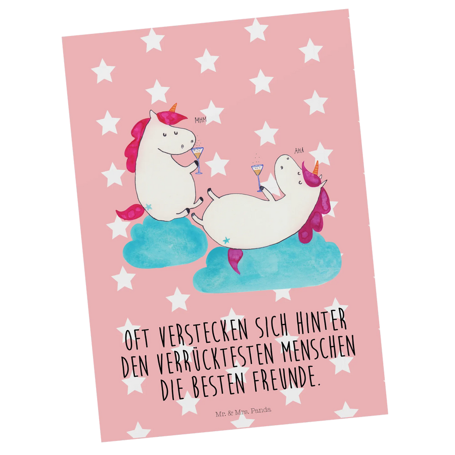 Postkarte Einhörner Sekt - mit Spruch - Rot Pastell