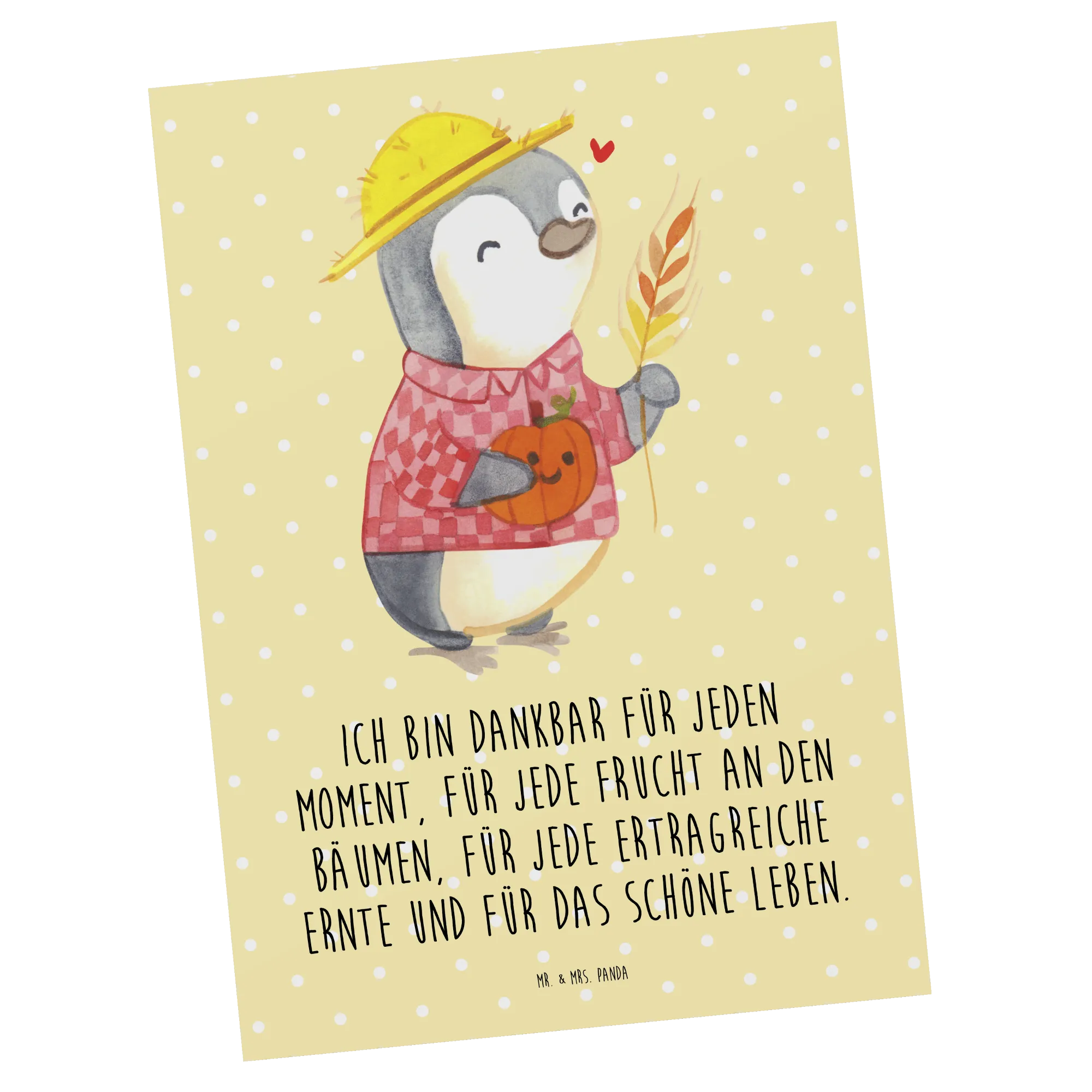 Entdecke die zauberhafte Erntedankfest Pinguin Postkarte von Mr. & Mrs. Panda! Diese einzigartige Postkarte ist perfekt für das Erntedankfest und bringt die Wärme und Dankbarkeit dieser besonderen Zeit direkt zu dir nach Hause.