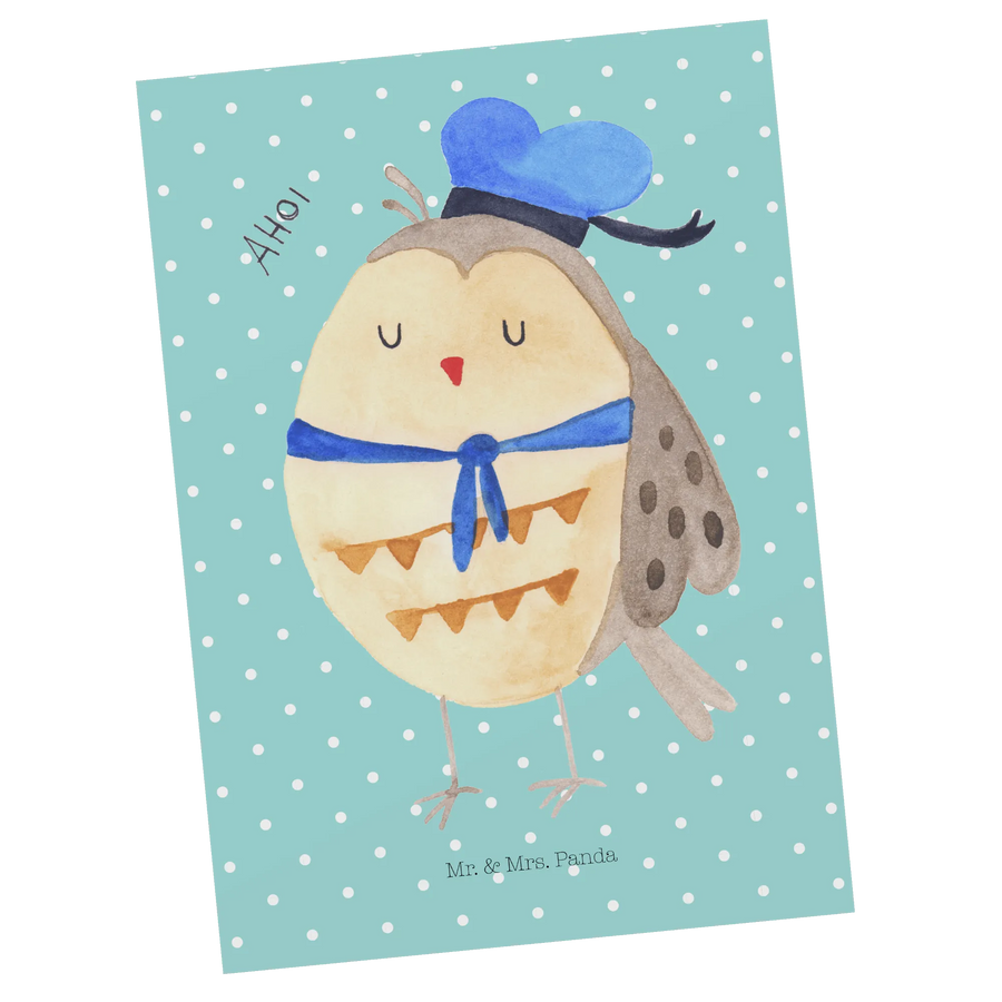 Postkarte Eule Matrose - ohne Spruch - Türkis Pastell