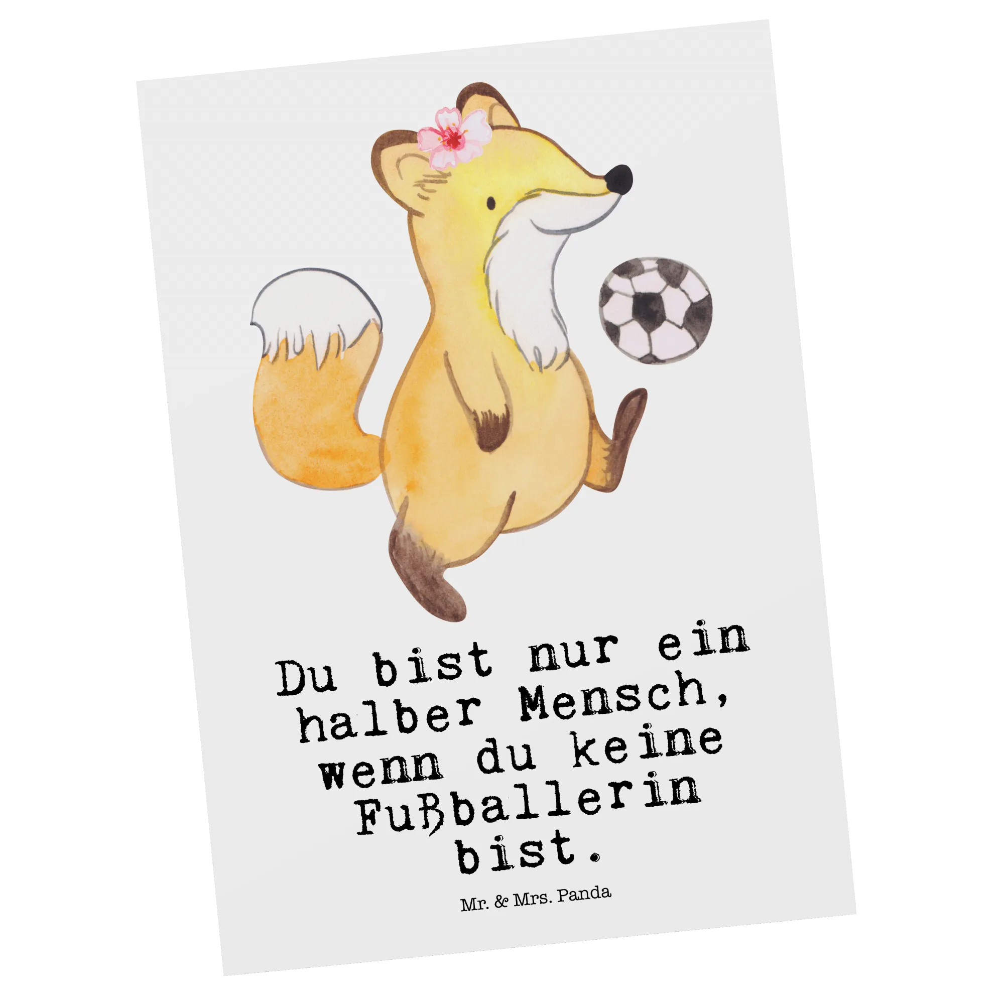 Die Postkarte 'Fußballerin mit Herz' aus der kreativen Berufe Kollektion von Mr. & Mrs. Panda ist das perfekte Geschenk für alle Fußballliebhaber und Sportlerinnen! Diese einzigartig gestaltete Postkarte zeigt eine niedliche, weibliche Fuchsfigur, die stolz einen Fußball kickt. Sie strahlt Leidenschaft und Freude für den Fußballsport aus, und genau das macht dieses Motiv so besonders.