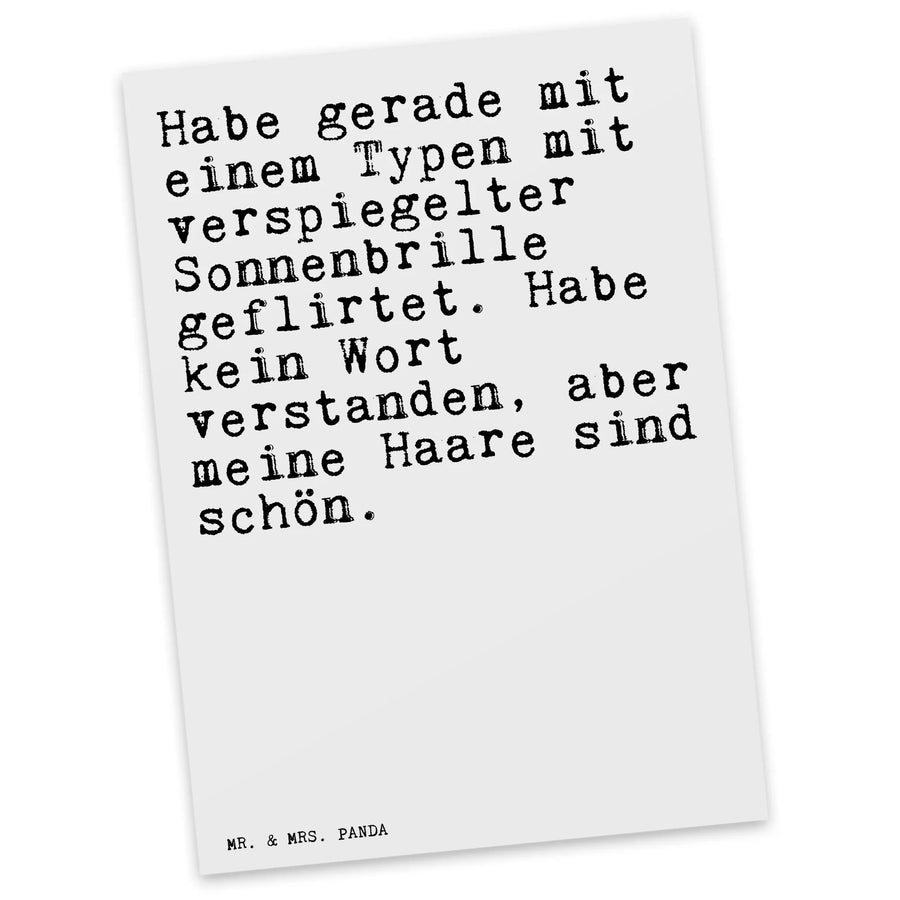 Postkarte Sprüche und Zitate Habe gerade mit einem Typen mit verspiegelter Sonnenbrille geflirtet. Habe kein Wort verstanden, aber meine Haare sind schön.