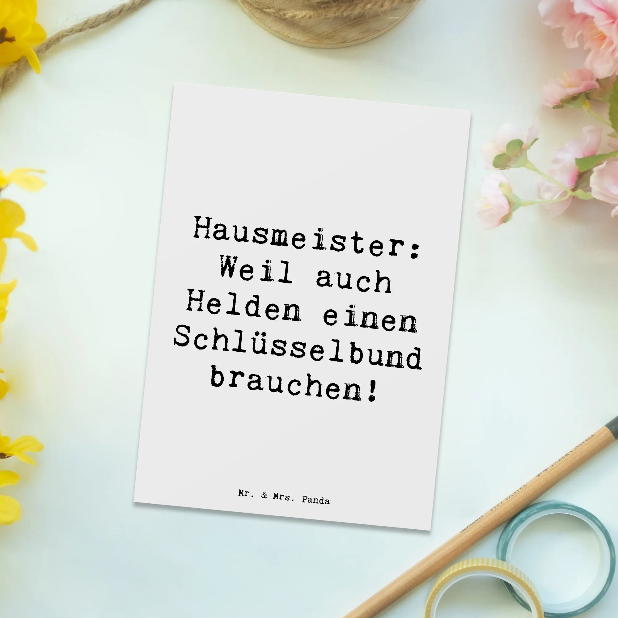 Postkarte Spruch Hausmeister: Weil auch Helden einen Schlüsselbund bra – Mr. & Mrs. Panda