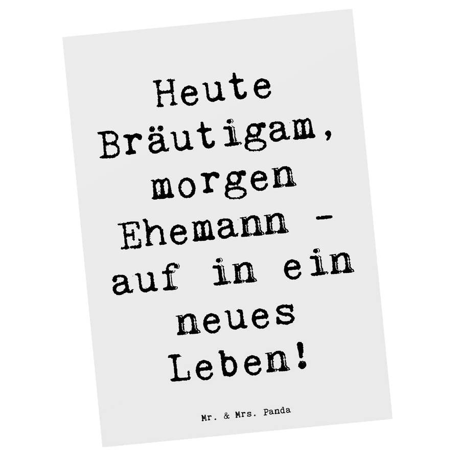 Tauche ein in die zauberhafte Welt von Mr. & Mrs. Panda mit unserer einzigartigen Postkarte, liebevoll bedruckt mit niedlichen Motiven und einem witzigen Spruch: "Heute Bräutigam, morgen Ehemann - auf in ein neues Leben!" Diese Karte ist die perfekte Begleitung für deinen ganz besonderen Anlass, sei es eine Hochzeit, ein Geburtstag oder eine Taufe.