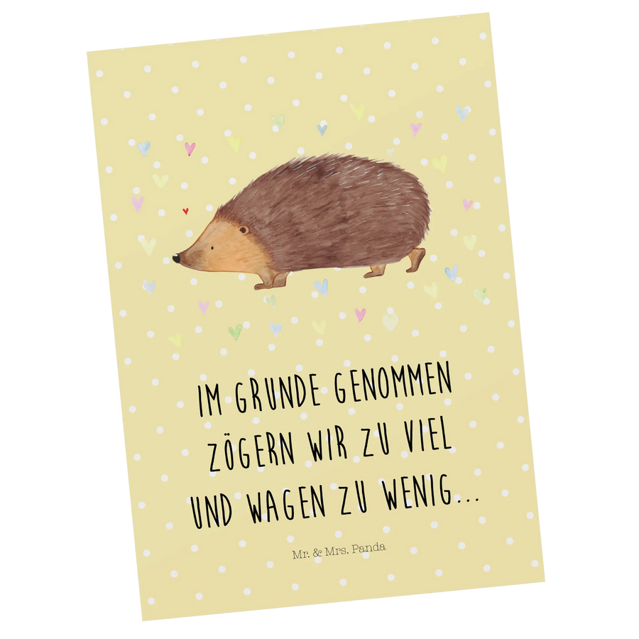 Postkarte Igel Herzen - mit Spruch - Gelb Pastell