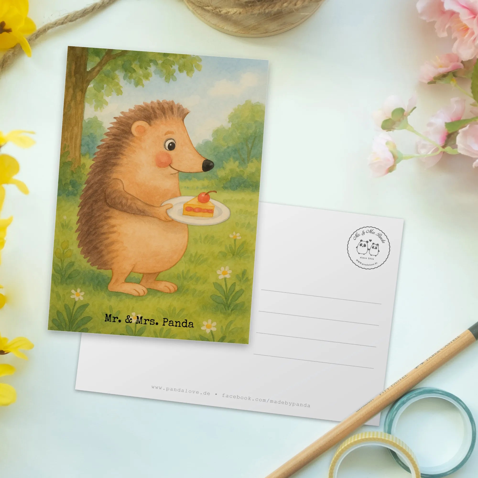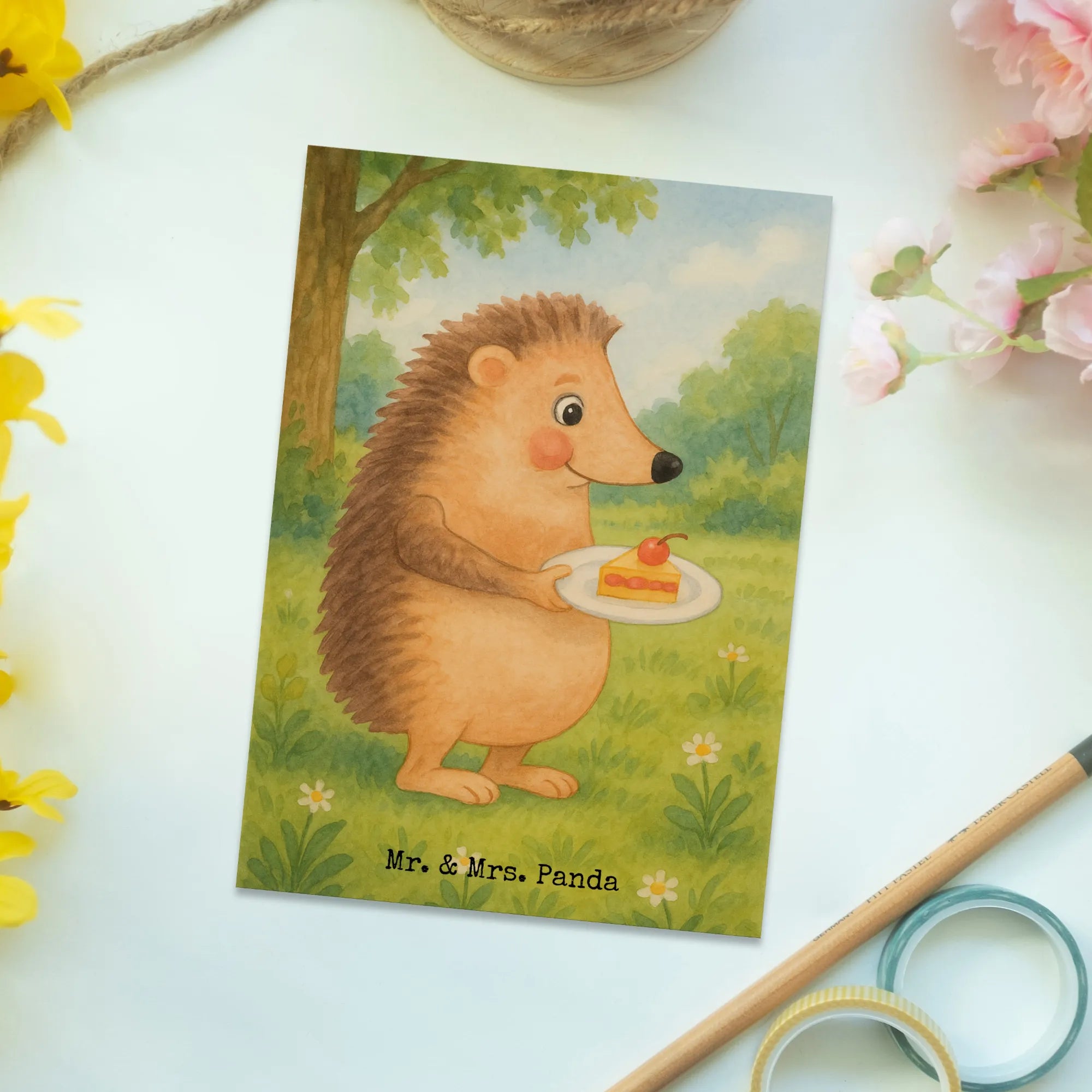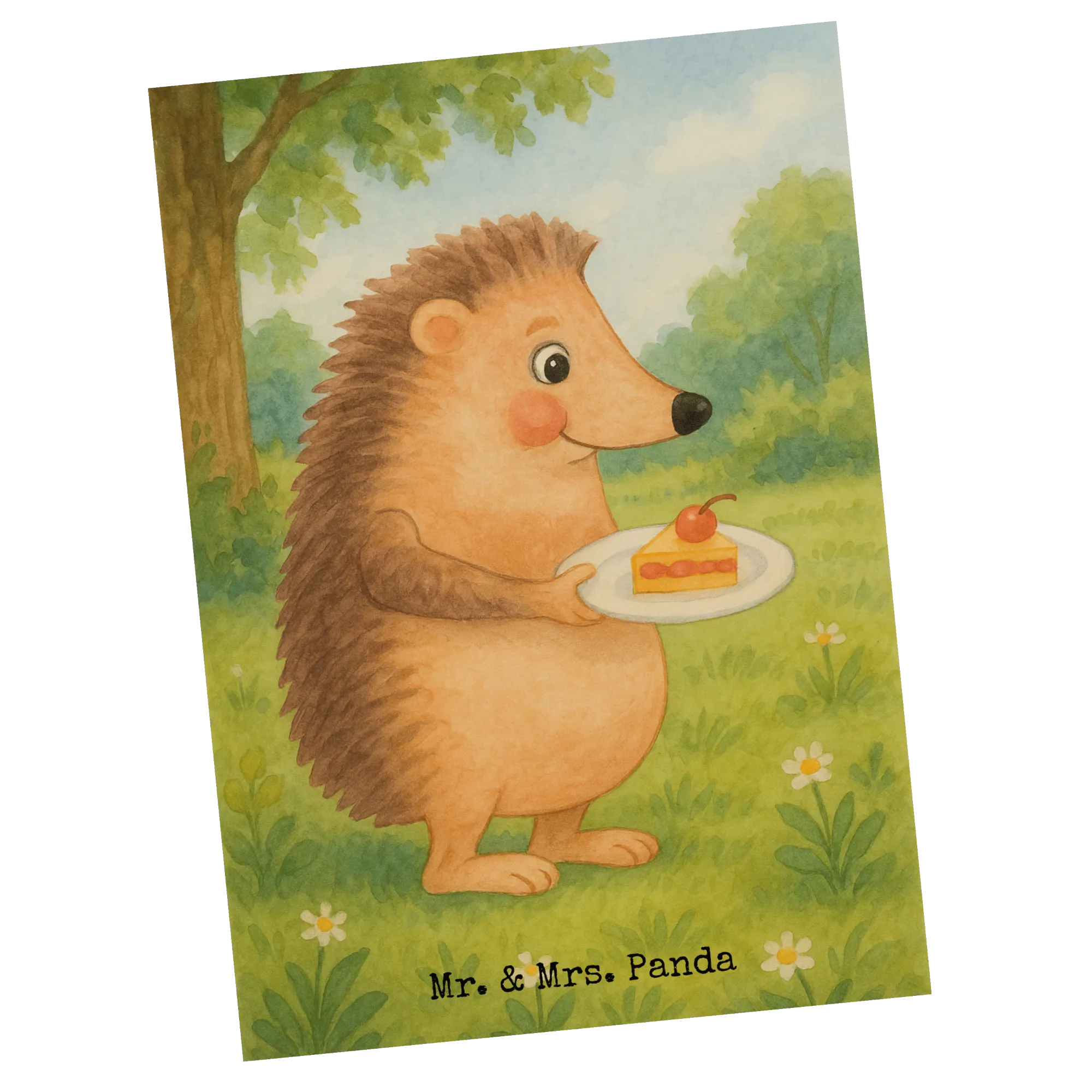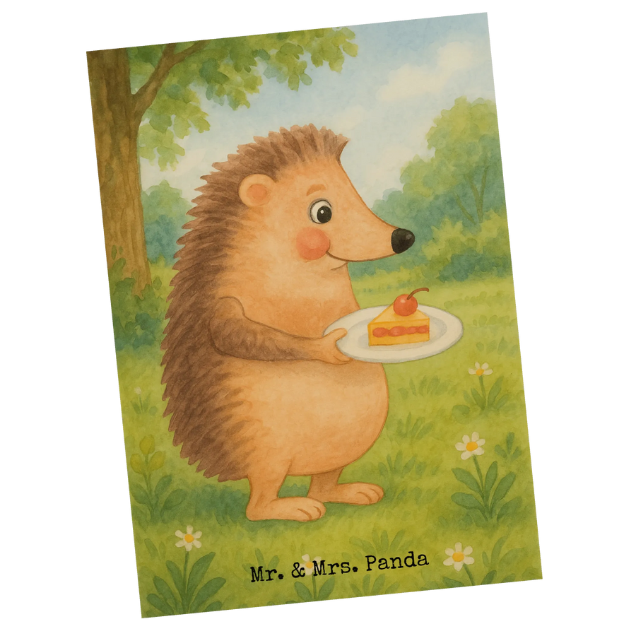 Postkarte Igel Kuchenstück Design