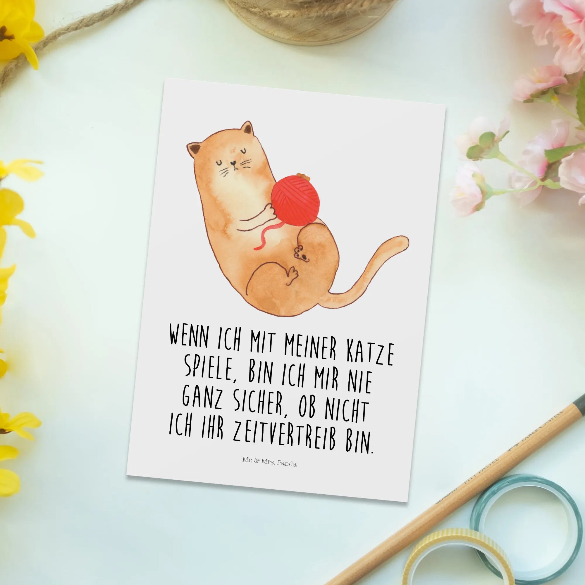 Postkarte "Katzen Wollknäuel" – aus der Katzen - Kollektion von Mr. & Mrs. Panda