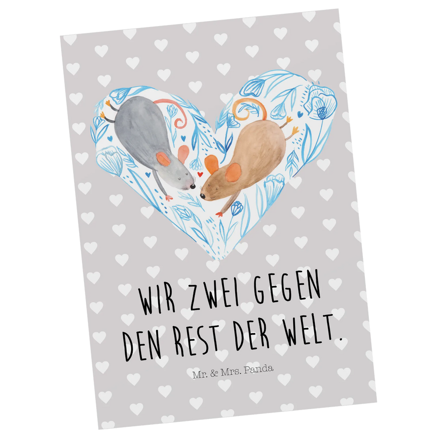 Postkarte Mäuse Herz - mit Spruch - Grau Pastell