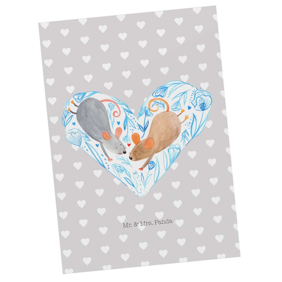 Postkarte Mäuse Herz - ohne Spruch - Grau Pastell