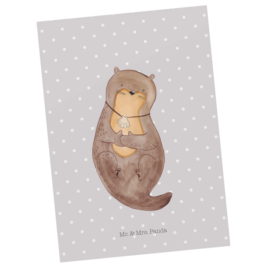 Postkarte "Otter mit Muschelmedaillon" – ein kleines Kunstwerk aus der Otter - Kollektion von Mr. & Mrs. Panda. Der niedliche Seeotter mit seiner feinen Muschelkette bringt maritime Stimmung und viel Charme in deine Grüße. 🐾🐚
