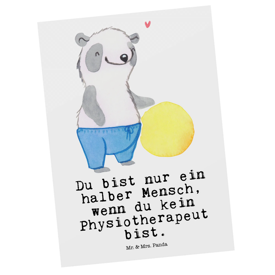 Die Postkarte 'Physiotherapeut mit Herz' aus der liebevollen Berufe Kollektion von Mr. & Mrs. Panda ist das perfekte Geschenk für alle Physiotherapeuten und Physiotherapeutinnen.