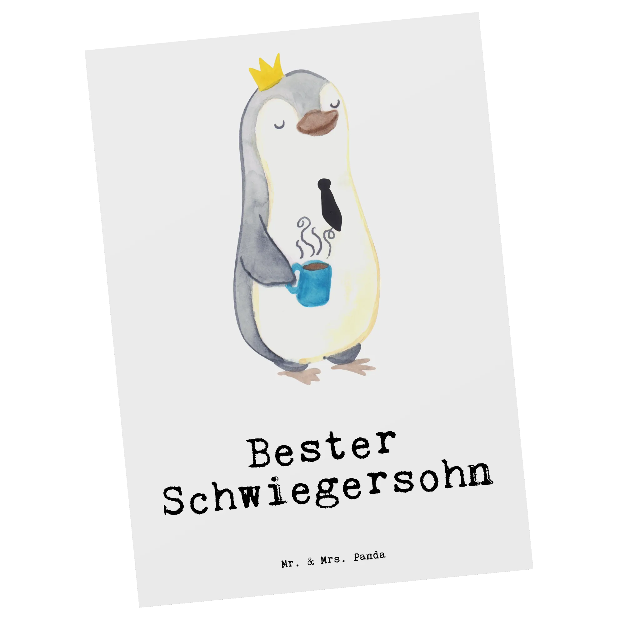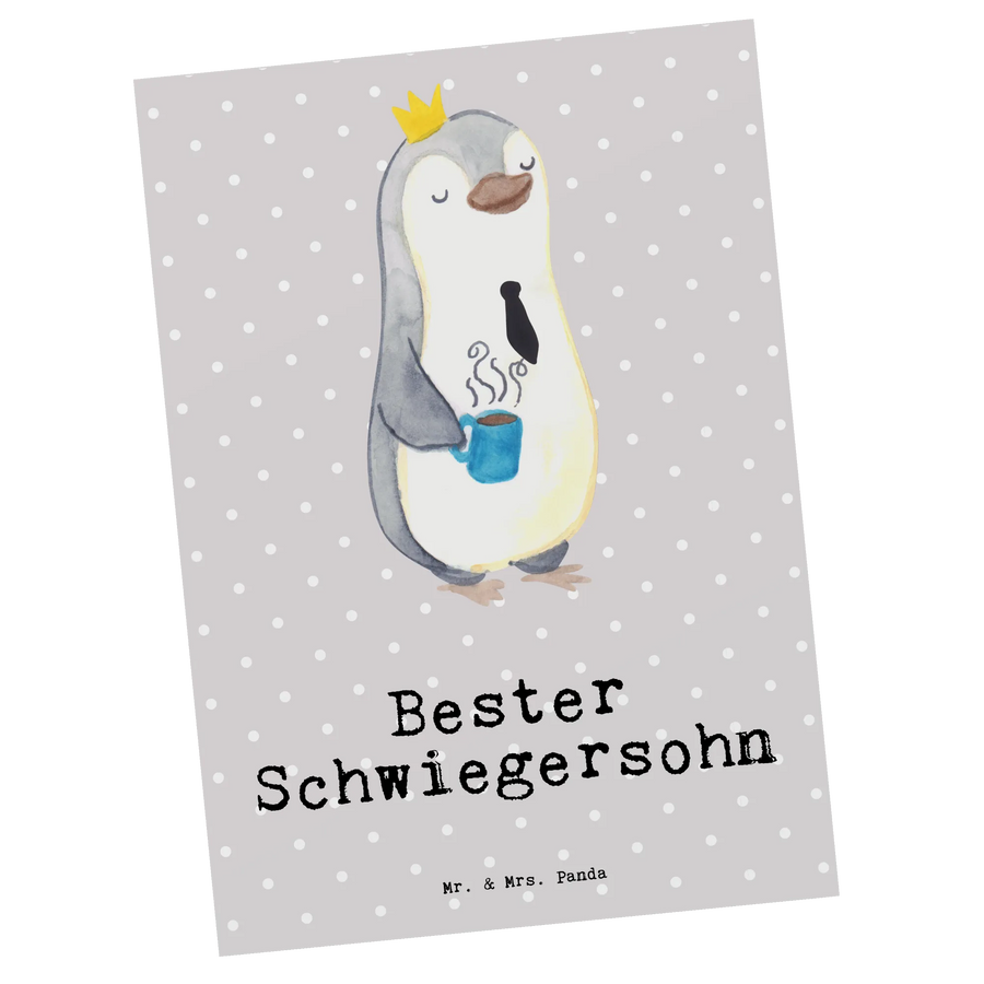 Die perfekte Postkarte für den besten Schwiegersohn! Diese einzigartige Postkarte von Mr. & Mrs. Panda zeigt einen niedlichen Pinguin mit einer Krone und einem Kaffee in der Hand. Mit dem witzigen Spruch 'Bester Schwiegersohn' ist diese Karte ein ideales Dankeschön und eine liebevolle Geste für besondere Anlässe wie Hochzeiten, Geburtstage und Feiertage.