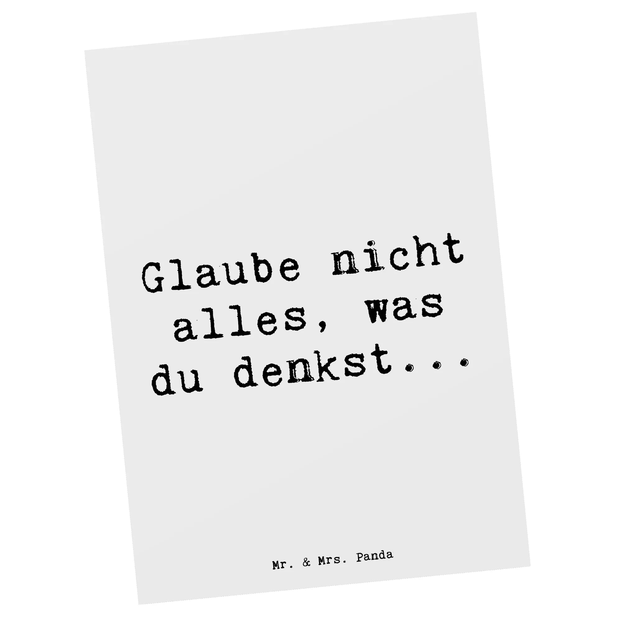 Die Mr. & Mrs. Panda Postkarte zum Thema Selbstvertrauen aus der Collection Gefühle & Stimmungen ist nicht nur eine gewöhnliche Karte. Sie ist ein besonderes Geschenk für Freunde, Familie oder sogar für dich selbst, um ein bisschen mehr Selbstvertrauen und positive Stimmung in dein Leben zu bringen. Mit dem bezaubernden Spruch "Glaube nicht alles, was du denkst..." erinnert sie uns daran, dass wir oft unsere eigenen größten Kritiker sind.