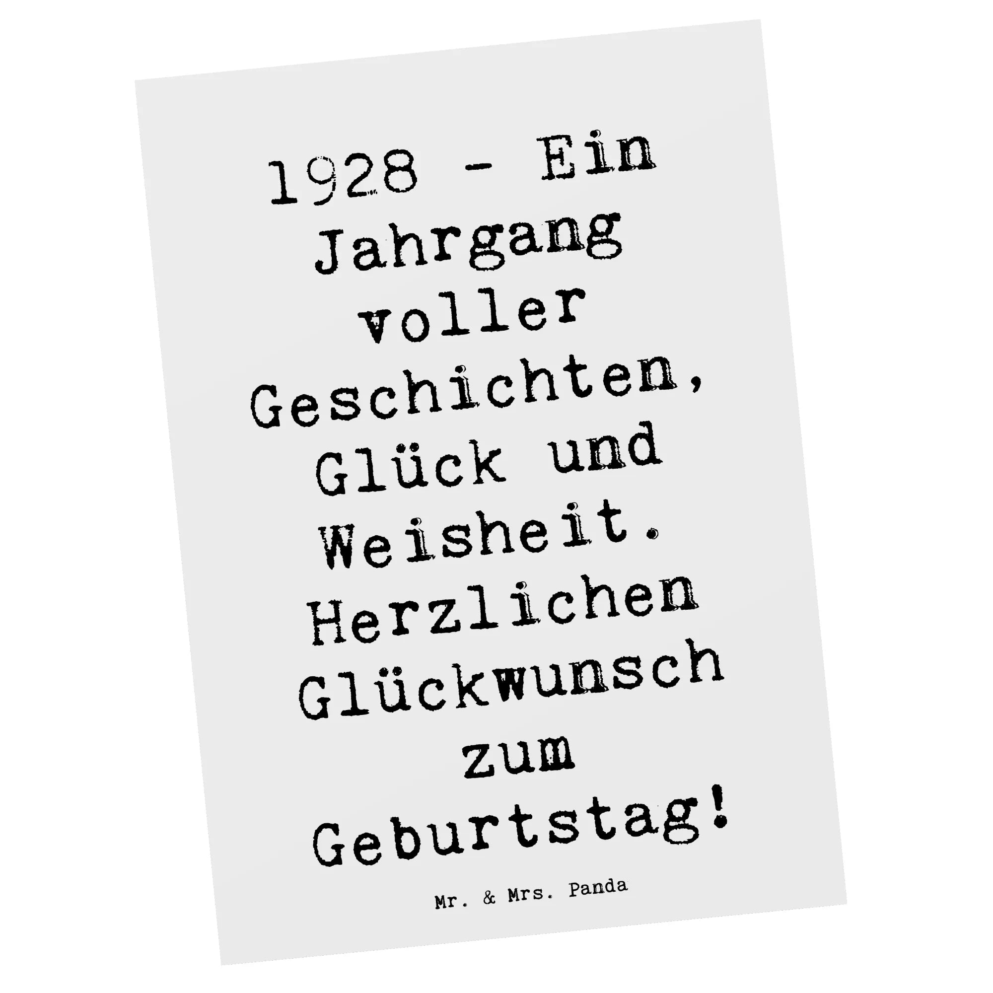 1928 - Ein Jahrgang voller Geschichten: Unsere Postkarte „1928 Geburtstag“ aus der Mr. & Mrs. Panda Geburtstagskollektion ist ein liebevoll gestalteter Gruß für Menschen, die 1928 geboren wurden. Der herzliche Spruch „1928 - Ein Jahrgang voller Geschichten, Glück und Weisheit. Herzlichen Glückwunsch zum Geburtstag!“ macht diese Karte zur perfekten Geburtstagskarte 1928, Grußkarte 1928 oder Geschenkidee zum Geburtsjahr.