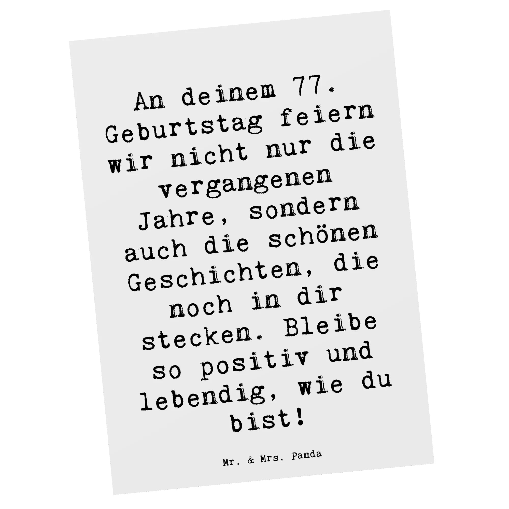 Unsere Panda-Fans suchen auch nach: 77. Geburtstag, vergangene Jahre, schöne Geschichten, positive Momente, lebendig, Abenteuer, Freude, Humor, Erinnerung, einzigartig, Geburtstag feiern