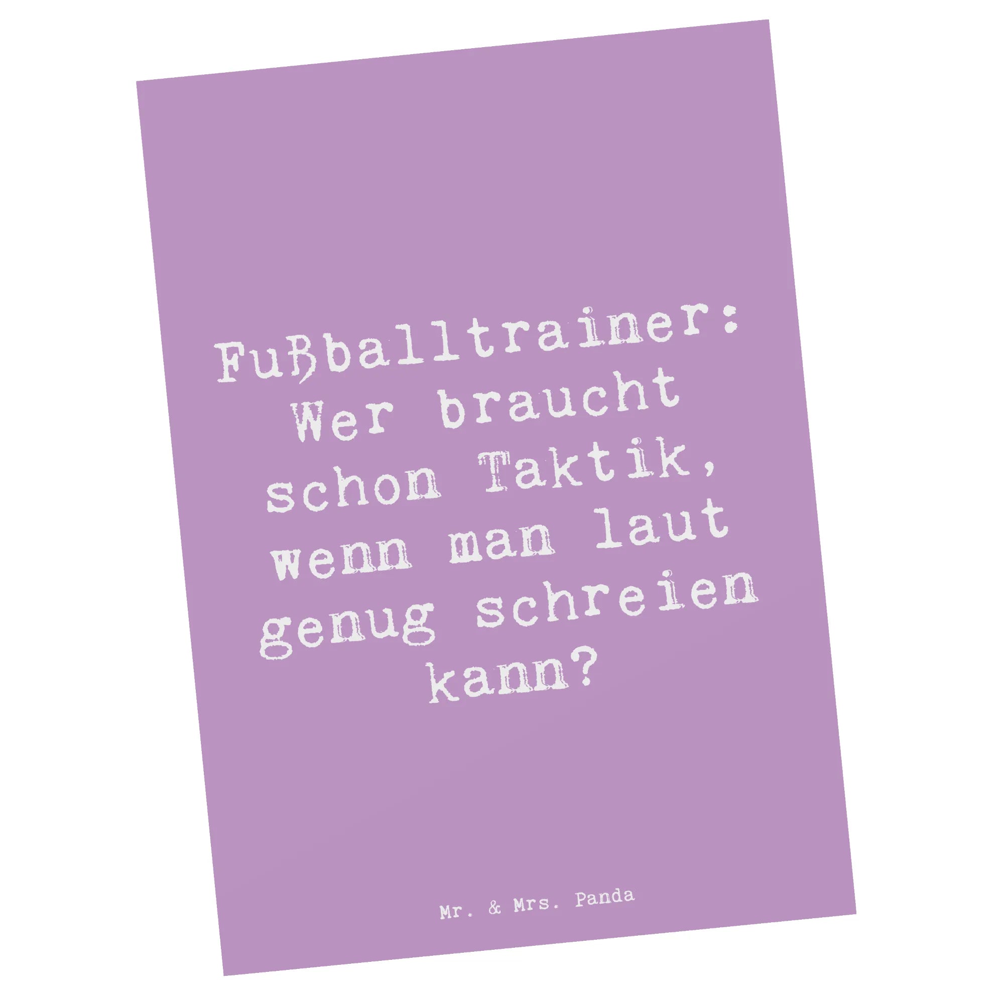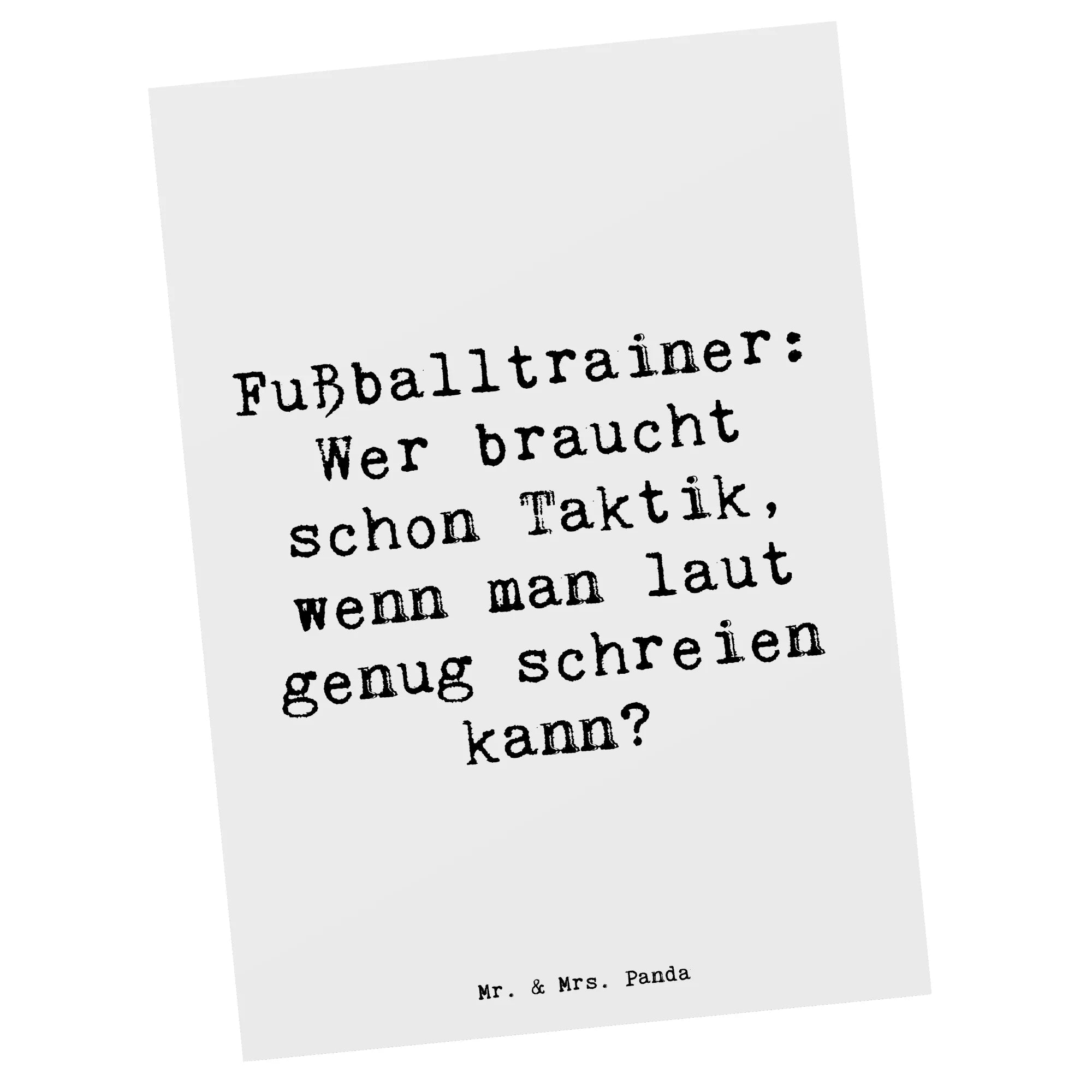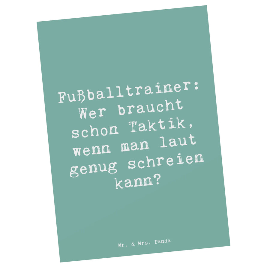 Die einzigartige Postkarte von Mr. & Mrs. Panda mit dem Motiv "Fußballtrainer: Wer braucht schon Taktik, wenn man laut genug schreien kann?" ist das perfekte Geschenk für alle Fußballcoaches und Sportliebhaber. Egal ob zu Weihnachten, zum Geburtstag oder als Dankeschön - diese Karte bringt nicht nur ein Lächeln ins Gesicht, sondern zeigt auch Wertschätzung für das, was Trainer leisten.