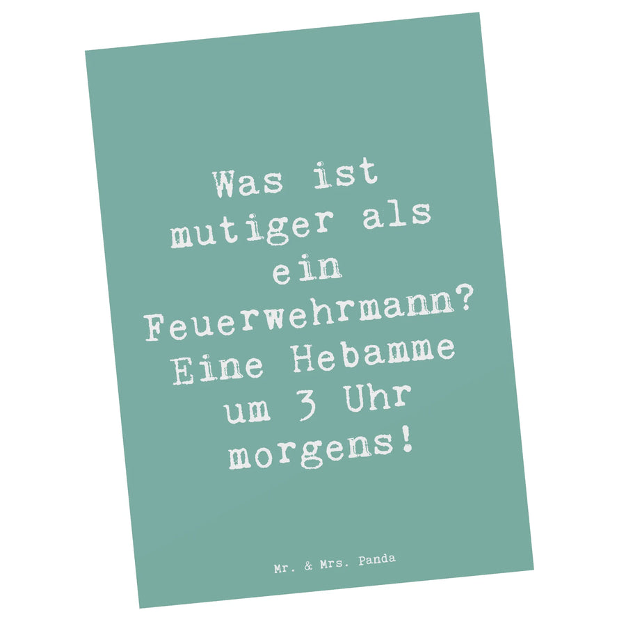 Suchst Du ein kleines, herzliches Geschenk für eine Hebamme? Unsere Postkarte „Hebamme" aus der Berufe-Kollektion von Mr. & Mrs. Panda ist genau das Richtige. Der freche Spruch „Was ist mutiger als ein Feuerwehrmann? Eine Hebamme um 3 Uhr morgens!” zaubert garantiert ein Lächeln und drückt gleichzeitig Wertschätzung für die tägliche Arbeit einer Hebamme aus.