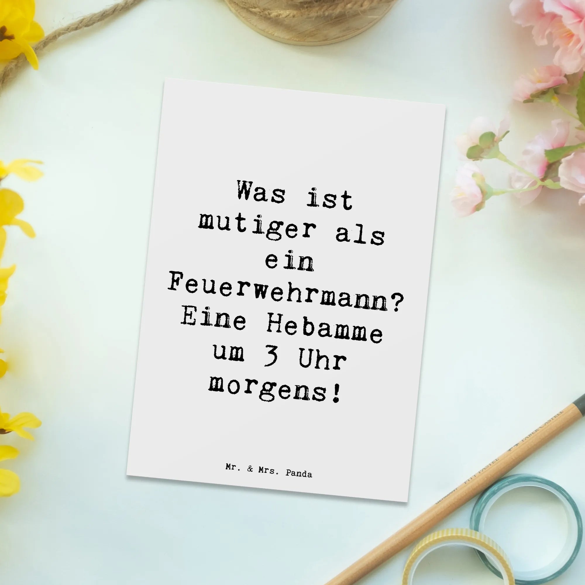 Suchst Du ein kleines, herzliches Geschenk für eine Hebamme? Unsere Postkarte „Hebamme" aus der Berufe-Kollektion von Mr. & Mrs. Panda ist genau das Richtige. Der freche Spruch „Was ist mutiger als ein Feuerwehrmann? Eine Hebamme um 3 Uhr morgens!” zaubert garantiert ein Lächeln und drückt gleichzeitig Wertschätzung für die tägliche Arbeit einer Hebamme aus.