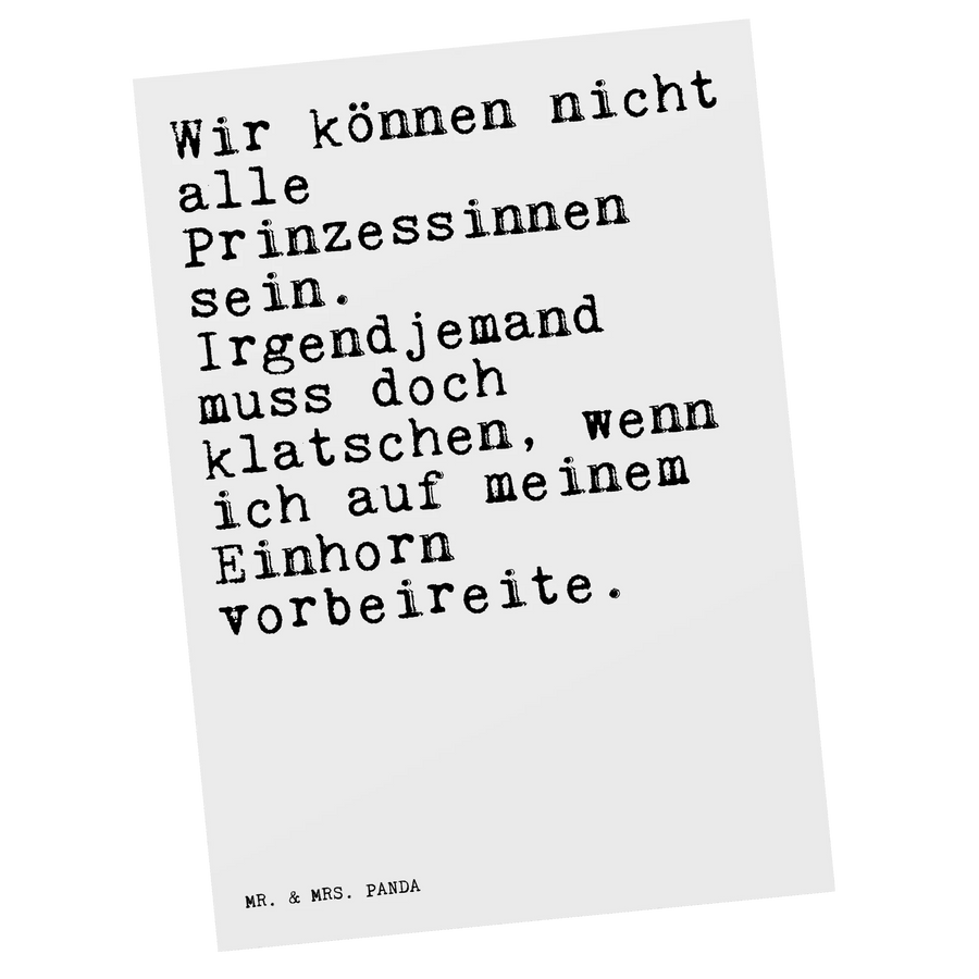 Postkarte Sprüche und Zitate Wir können nicht alle Prinzessinnen sein. Irgendjemand muss doch klatschen, wenn ich auf meinem Einhorn vorbeireite. - Weiß
