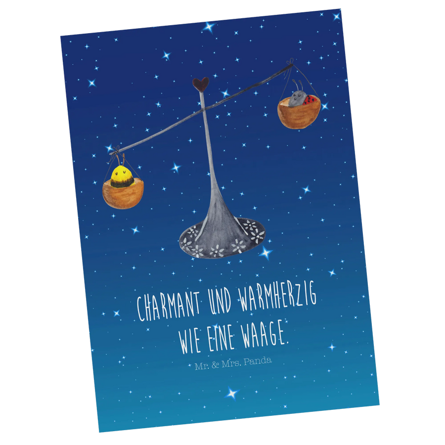 Die einzigartige Postkarte mit dem Sternzeichen Waage von Mr. & Mrs. Panda ist das perfekte Geschenk für all jene, die den Charakter und die Eigenschaften der Waage lieben. Mit dem liebevollen Slogan "Charmant und warmherzig wie eine Waage" bringt sie nicht nur Freude, sondern auch eine Portion Magie in jede Grußbotschaft.