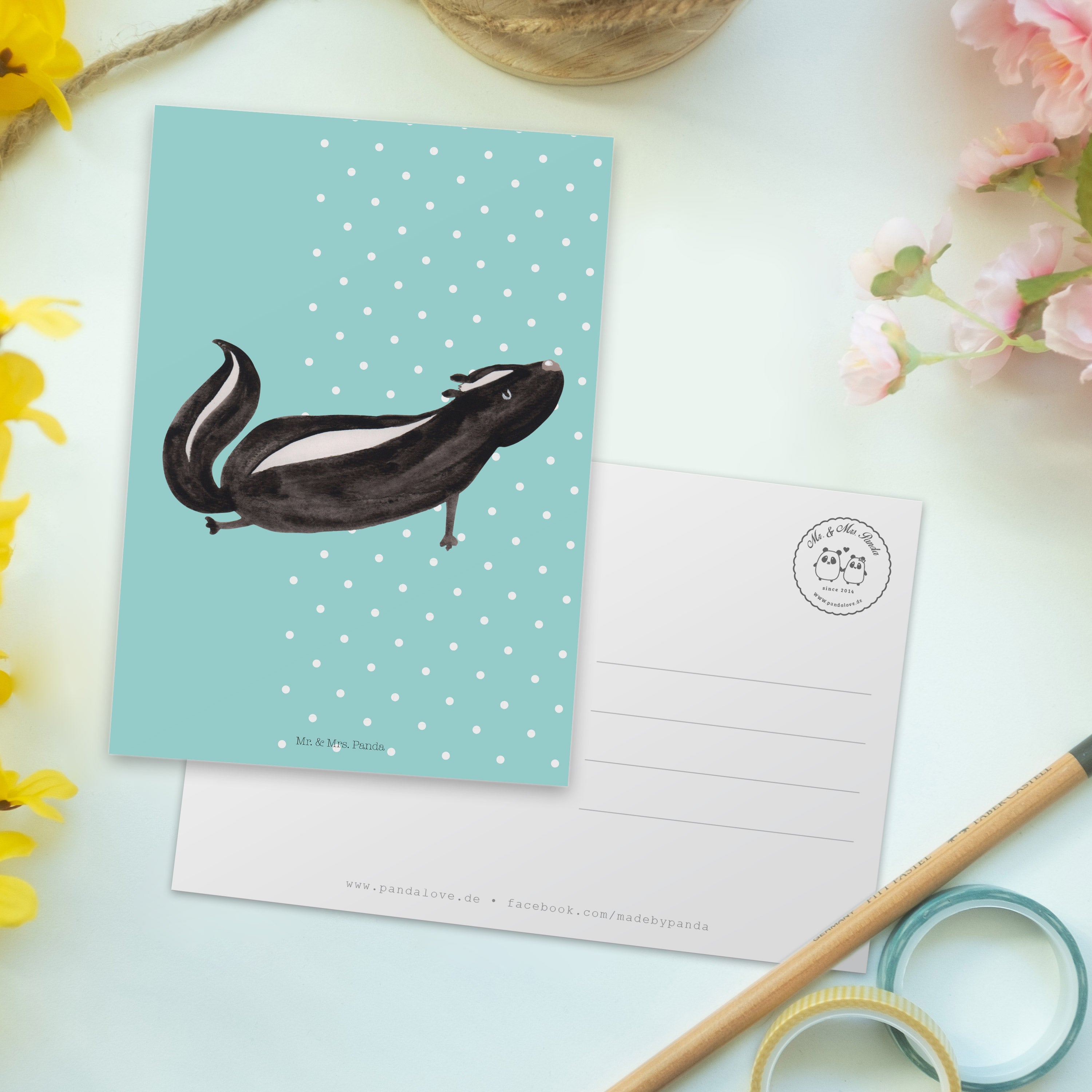 Diese zauberhafte Postkarte aus der Stinktier - Kollektion von Mr. & Mrs. Panda bringt ein Lächeln in jeden Briefkasten. Das süße Stinktier im Aquarellstil, vor einem sanften Türkis-Pastell-Hintergrund, sitzt entspannt in seiner Yoga-Pose und trägt den liebevollen Slogan „Namaste! Lebe. Liebe. Lache.“ – eine kleine Erinnerung an Achtsamkeit, Lebensfreude und Selbstfürsorge.