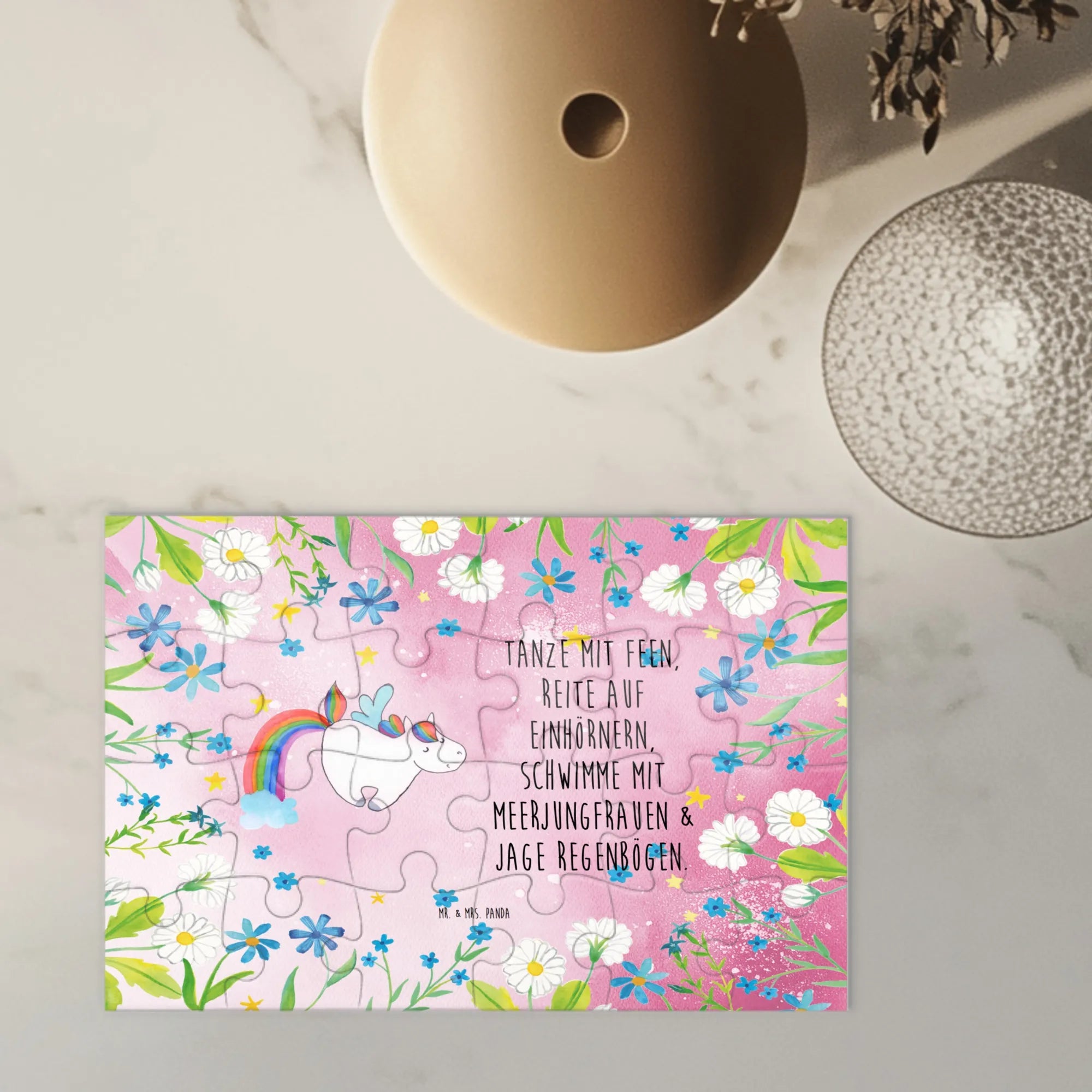 Finde Freude am Puzzlen mit unserem tollen Puzzle von Mr. & Mrs. Panda! Mit einem Format von 411 mm x 286 mm und einer hohen Qualität von 2 mm starkem Karton ist dein Puzzlerlebnis garantiert. Die faszinierenden Motive und herzlichen Sprüche verschönern jede Puzzlesession und bringen dir ein Lächeln ins Gesicht. Außerdem kommt das Puzzle in einer stylischen Metall-Schmuckdose, die das wundervolle Design auf dem Deckel präsentiert. Dieses Puzzle ist ein wunderbares Geschenk für Anlässe wie Weihnachten und Ostern oder einfach als besondere Überraschung für einen lieben Menschen. Umweltfreundliche und nachhaltige Tinte sorgt dafür, dass du mit gutem Gewissen puzzlen kannst. Also lass die Teile zusammenkommen und genieße die Zeit mit Familie und Freunden!
