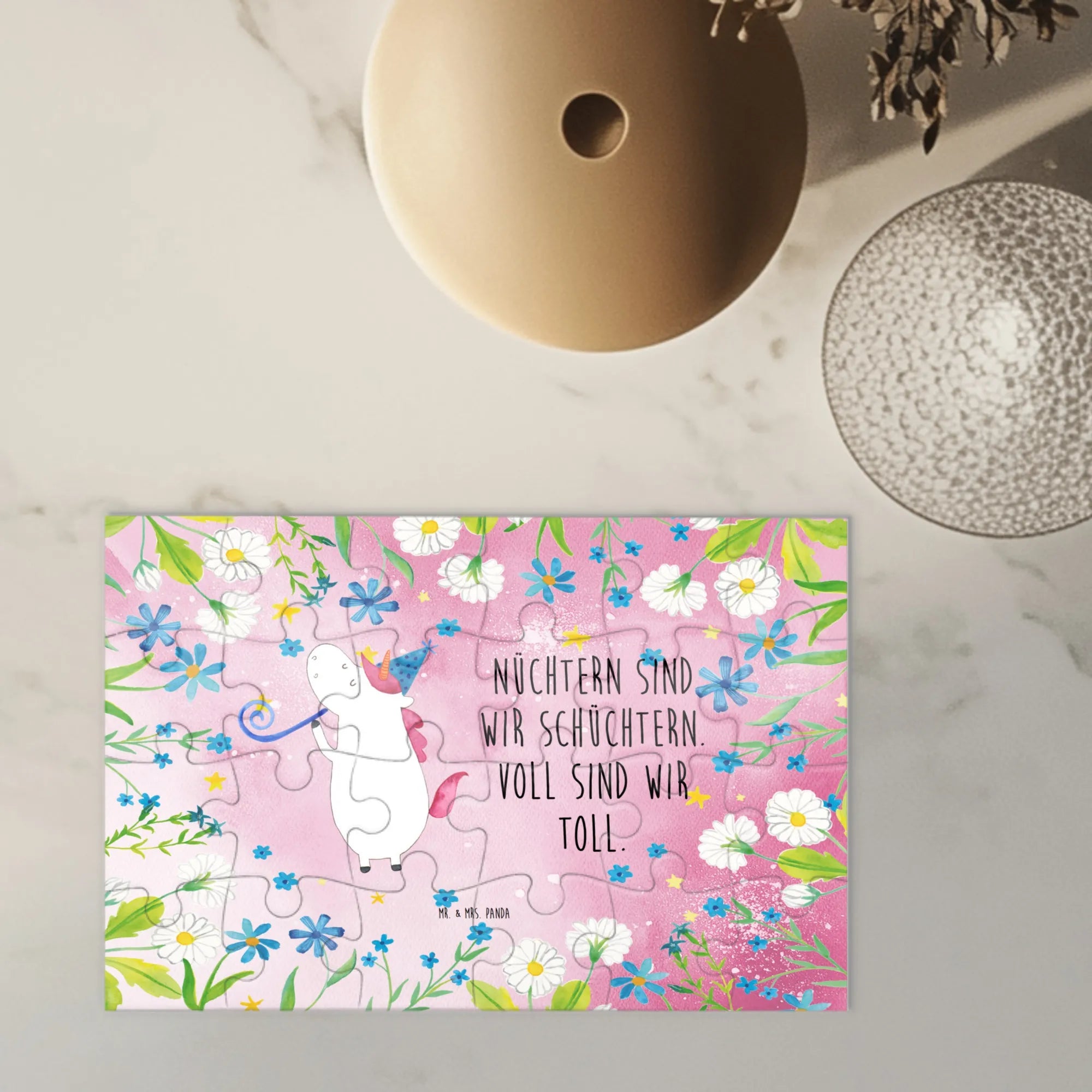 Erlebe die Freude am Puzzlen mit unserem schönen Puzzle von Mr. & Mrs. Panda! Mit einzigartigen Motiven und inspirierenden Sprüchen wird jedes Puzzlestück zu einem kleinen Kunstwerk. Hergestellt aus robustem 2 mm starkem Karton, bietet es dir eine tolle Puzzlerfahrung und hat die Maße von 474 mm x 658 mm. Dieses Puzzle ist perfekt für Geschenke, sei es zu Weihnachten, Ostern oder einfach als nette Geste. Die strahlenden Farben und der seidenmatte Aufdruck machen es zu einem echten Hingucker in jedem Raum. Zudem wird unser Puzzle mit umweltfreundlicher Tinte gedruckt, also kannst du ohne schlechtes Gewissen Spaß haben! Besonders praktisch ist die inklusive Metall-Schmuckdose, die das fertige Puzzle schützt und als tolle Puzzlehilfe dient. Holt euch jetzt den Spaß ins Haus!