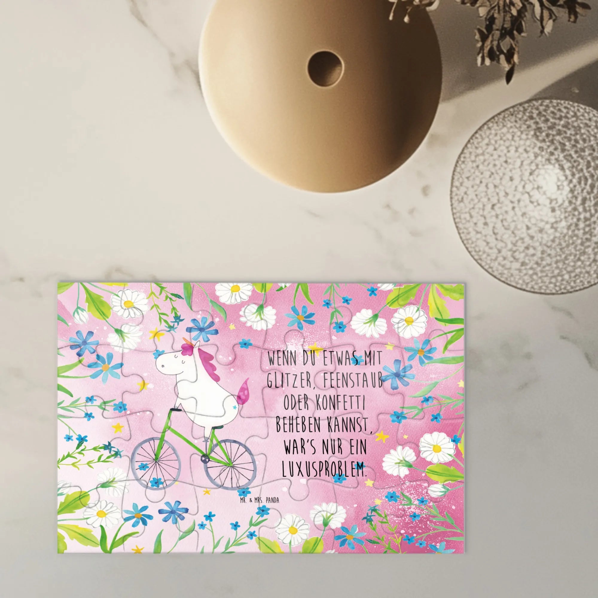 Zauberhaftes Puzzle „Einhorn Radfahrer“ aus der Einhorn - Kollektion von Mr. & Mrs. Panda