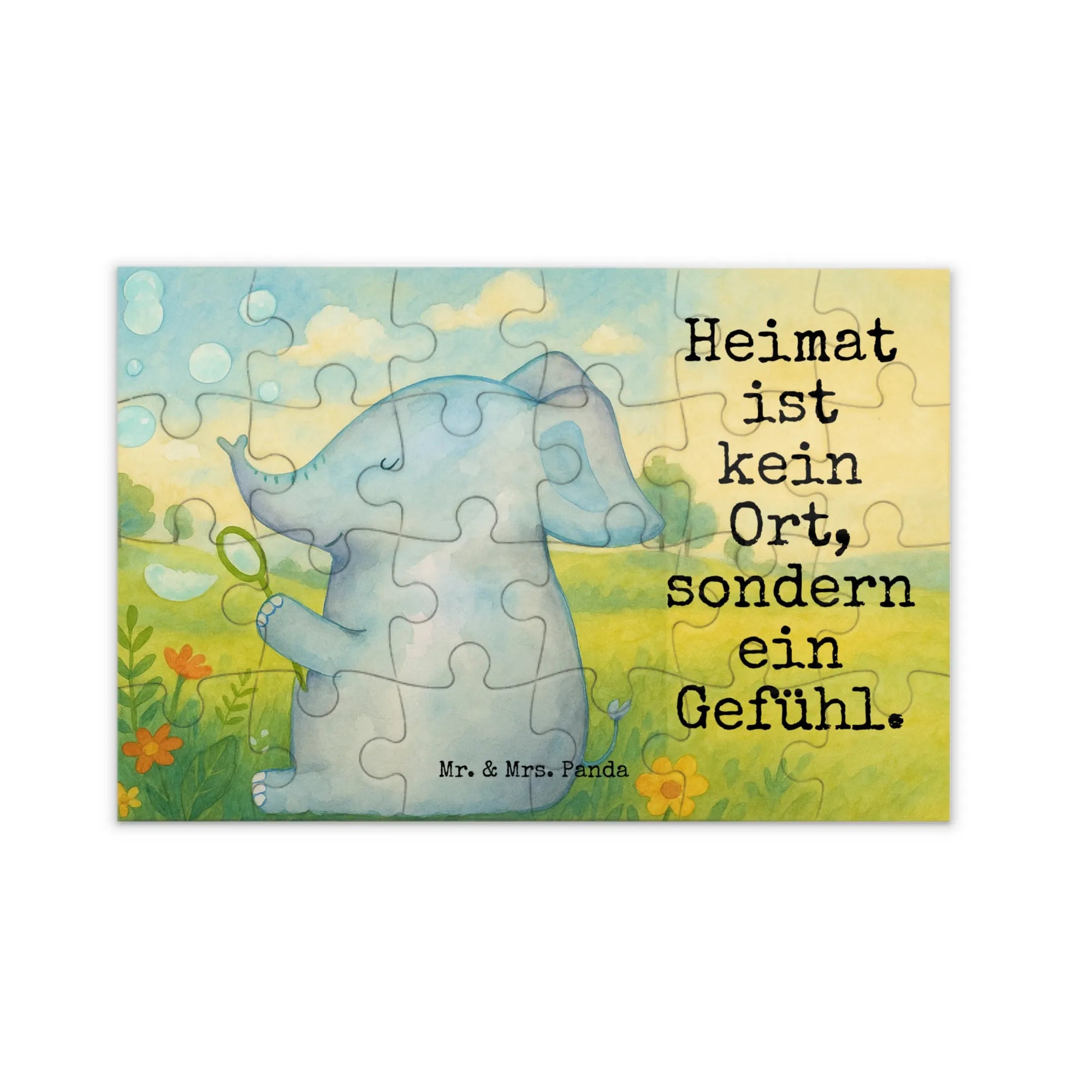 Dieses liebevoll gestaltete Puzzle zeigt einen niedlichen Elefanten, der bunte Seifenblasen in die Luft pustet. Der aufgedruckte Spruch „Heimat ist kein Ort, sondern ein Gefühl.“ macht das Motiv besonders emotional und eignet sich perfekt als Liebesbeweis oder als Geschenk für Menschen, denen du zeigen willst, wie wichtig sie dir sind.