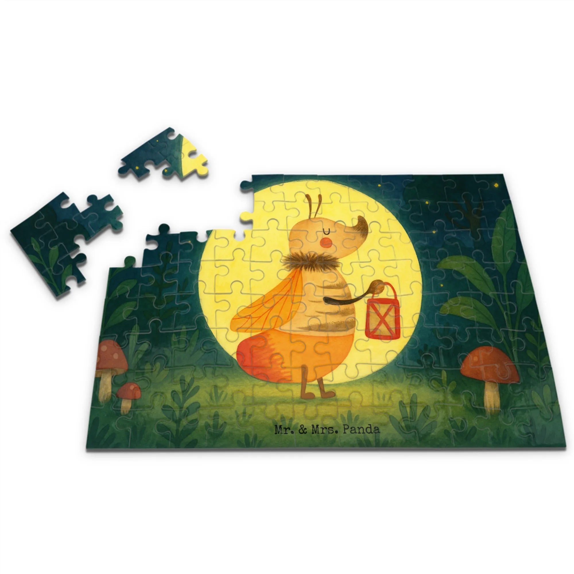 Design mit Herz: Handgezeichnete Aquarell-Illustrationen von Mrs. Panda, umweltfreundliche Druckfarbe und höchste Druckqualität machen dieses Puzzle zu etwas ganz Besonderem. Schenke Liebe, verschenke ein Erlebnis – mit dem Mr. & Mrs. Panda Glühwürmchen Puzzle.