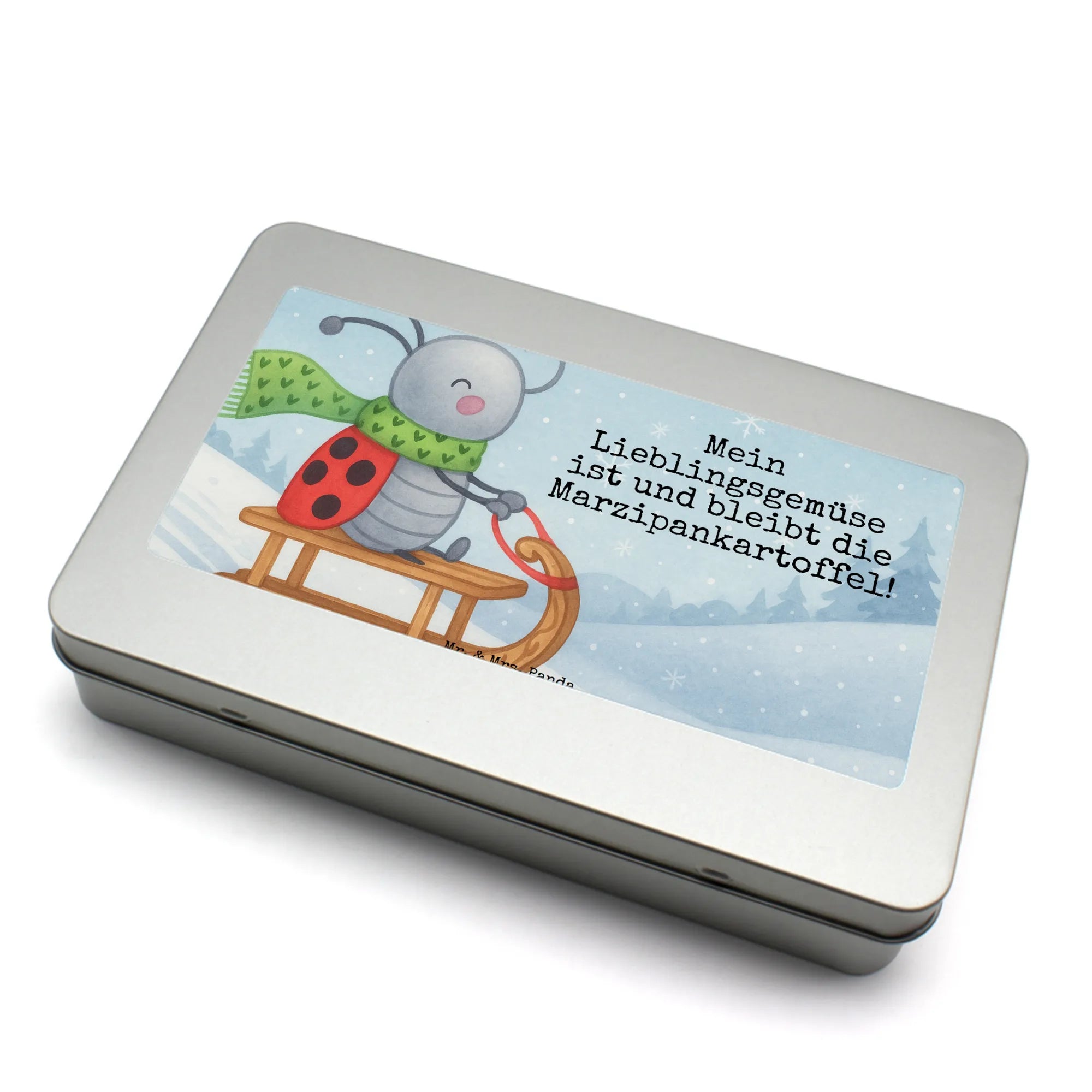 Der Motif "Smörle Rodeln" verbreitet Lebensfreude und winterliche Gemütlichkeit! Hier sitzt unser fröhlicher Marienkäfer Smörle auf seinem bunten Schlitten, bereit für ein unvergessliches Abenteuer im Schnee. Mit seinem grünen Schal, auf dem kleine Herzchen prangen, zeigt er, dass Rodeln die beste Art ist, den Winter zu genießen. Über ihm schwebt ein rotes Herz, das seine Freude unterstreicht. Das zaubert nicht nur ein Lächeln ins Gesicht, sondern erfüllt auch die Herzen mit Wärme. "Mein Lieblingsgemüse ist und bleibt die Marzipankartoffel!" steckt voller Spaß und Verspieltheit, passend zu diesem beaufschlagenden Wintermotiv.