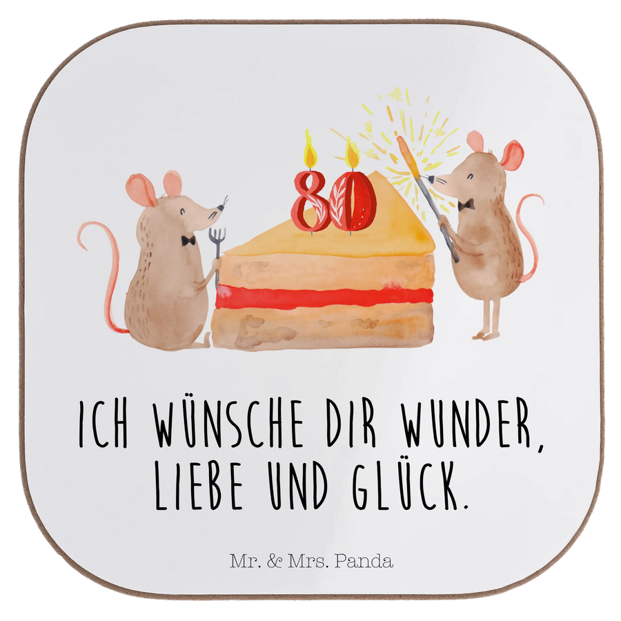 Untersetzer 80. Geburtstag Mäuse Kuchen - mit Spruch