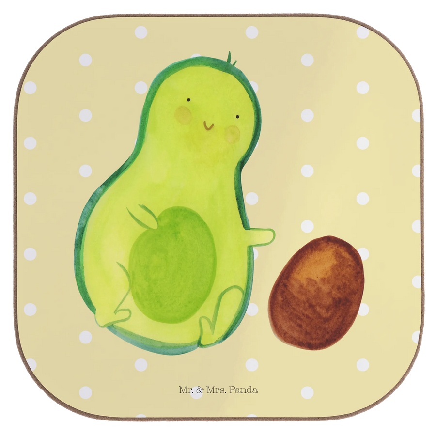 Quadratische Untersetzer Avocado rollt Kern - ohne Spruch - Gelb Pastell