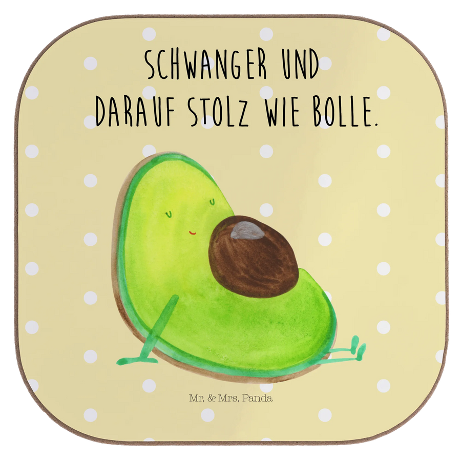 Quadratische Untersetzer Avocado schwanger - mit Spruch - Gelb Pastell
