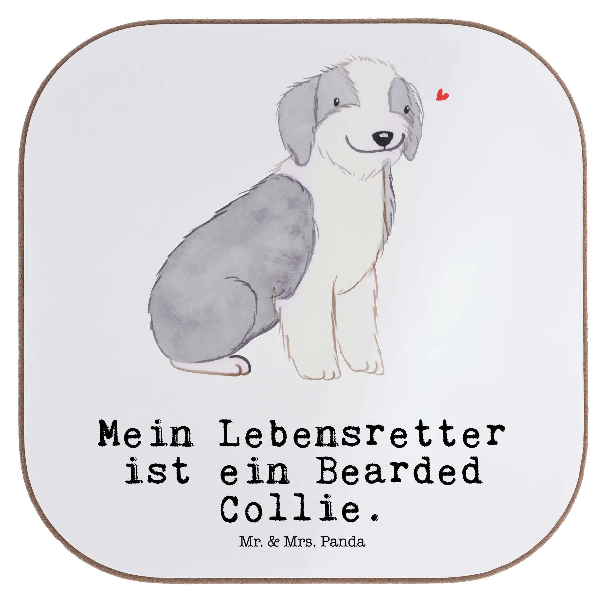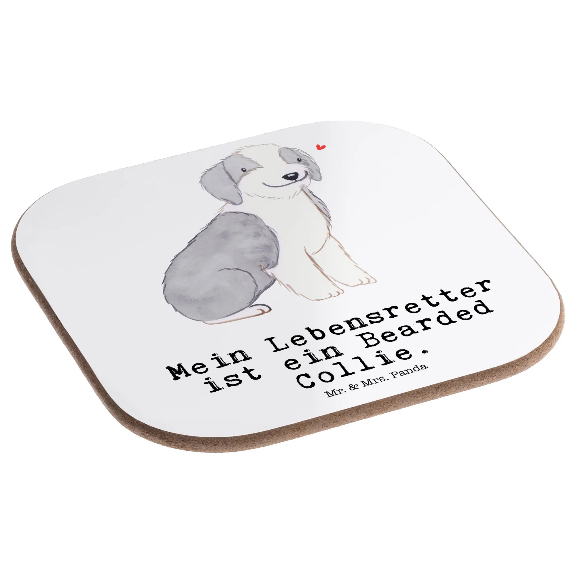 Quadratische Untersetzer Bearded Collie Lebensretter