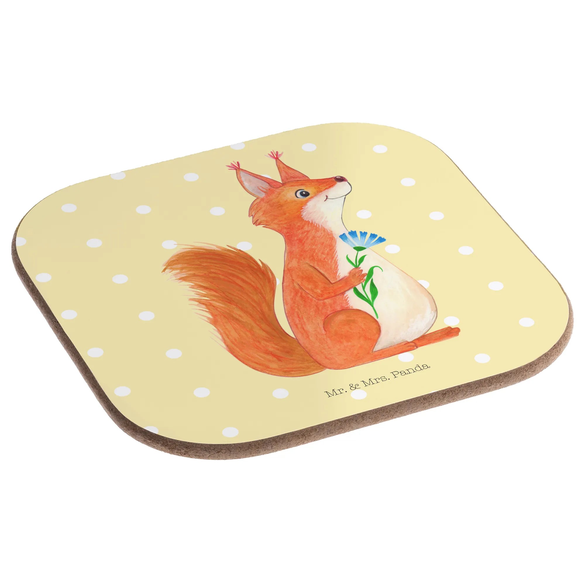 Entdecke den bezaubernden Eichhörnchen Blume Untersetzer aus der Small World Kollektion von Mr. & Mrs. Panda! 🌼 Dieser wunderschöne quadratische Untersetzer ist nicht nur ein praktisches Accessoire für deinen Tisch, sondern auch ein echter Stimmungsaufheller.