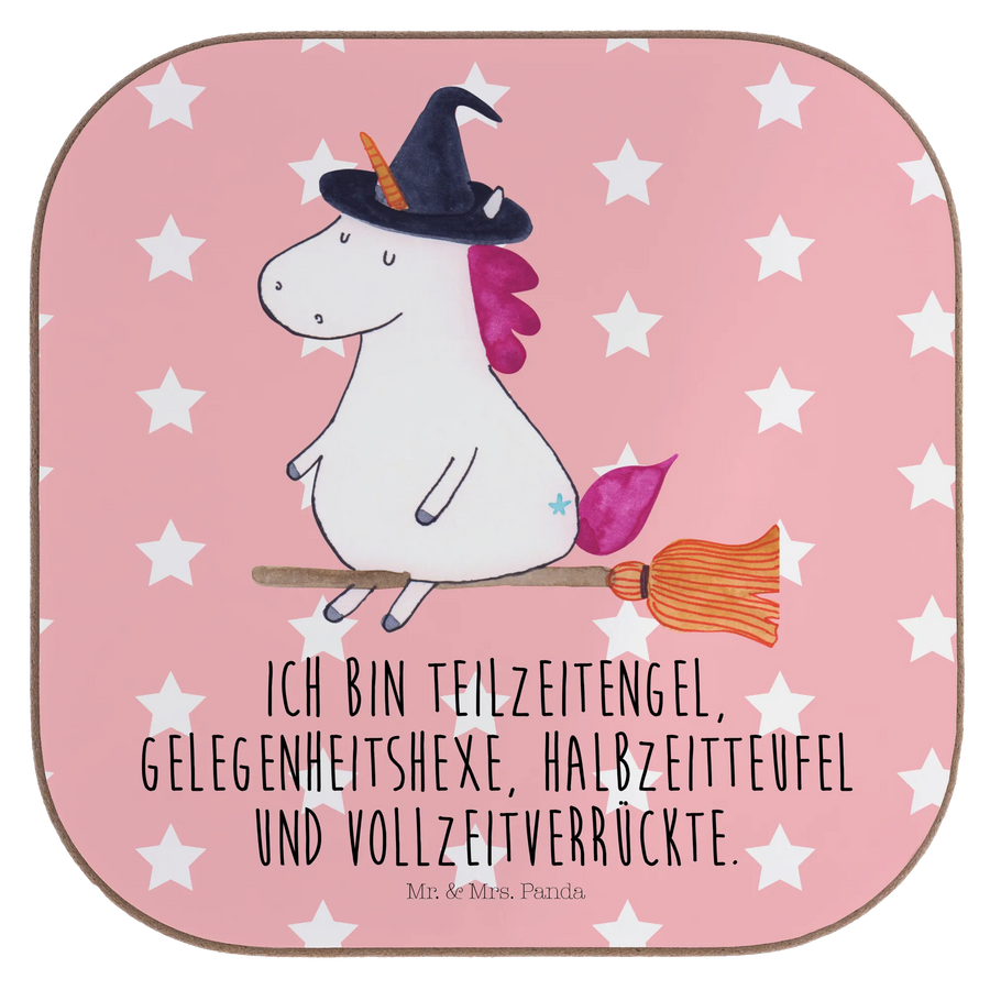 Untersetzer Einhorn Hexe - mit Spruch - Rot Pastell