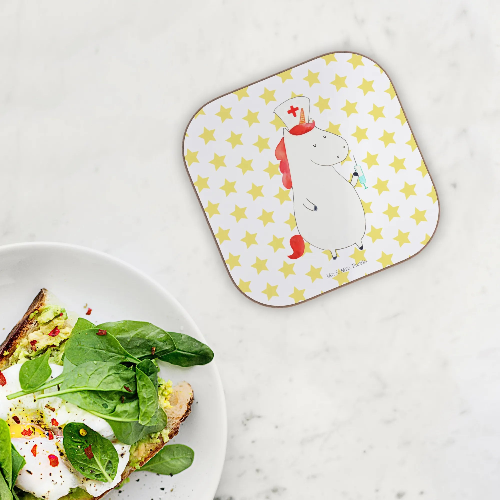 Entdecke die zauberhafte Welt der Einhörner mit unserem wundervollen Untersetzer 'Einhorn Krankenschwester' aus der speziellen Einhorn-Kollektion von Mr. & Mrs. Panda. Dieser quadratische Untersetzer ist nicht nur ein echter Hingucker, sondern auch super praktisch. Er schützt deinen Tisch vor unschönen Abdrücken und Kratzern.