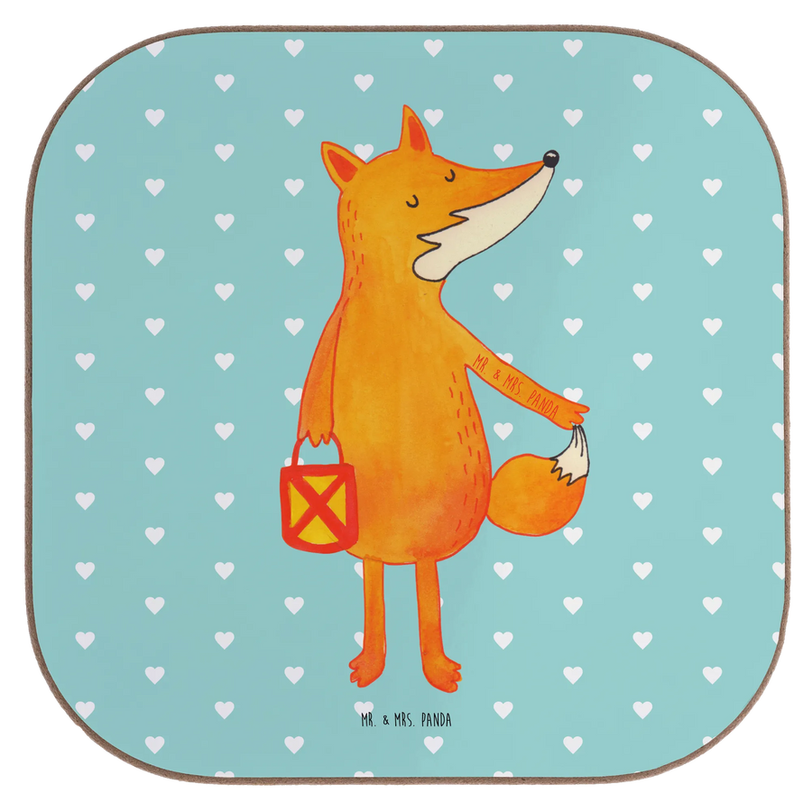 Quadratische Untersetzer Fuchs Laterne - ohne Spruch - Türkis Pastell