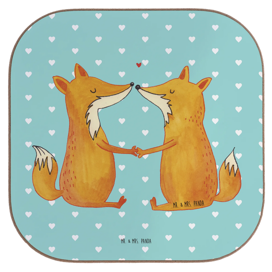Quadratische Untersetzer Füchse Liebe - ohne Spruch - Türkis Pastell