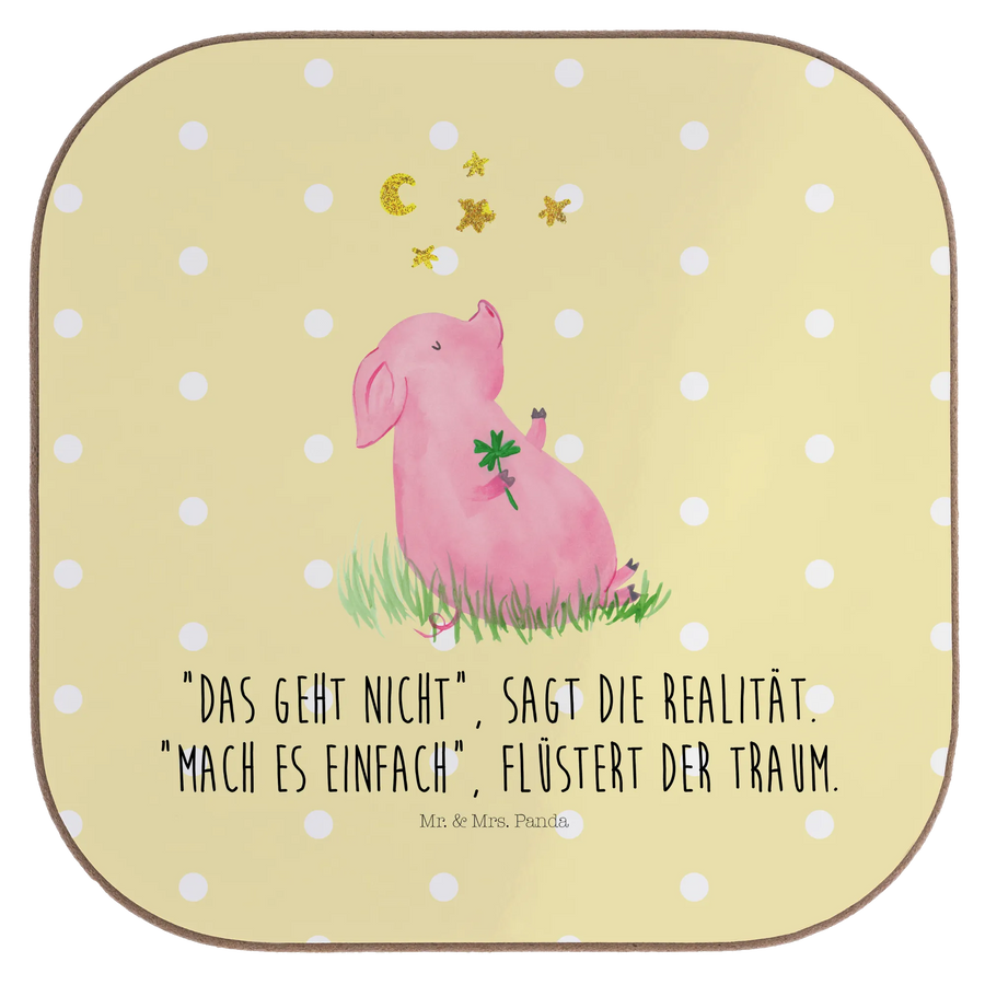Untersetzer Schwein Glück - mit Spruch - Gelb Pastell