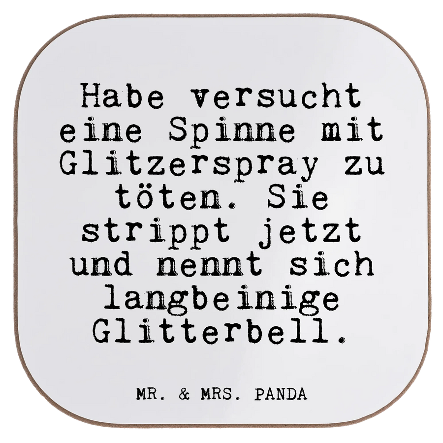 Quadratische Untersetzer Fun Talk Habe versucht eine Spinne mit Glitzerspray zu töten. Sie strippt jetzt und nennt sich langbeinige Glitterbell.