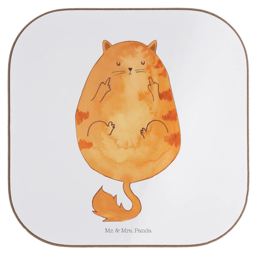 Quadratische Untersetzer Katze Mittelfinger - ohne Spruch - Weiß