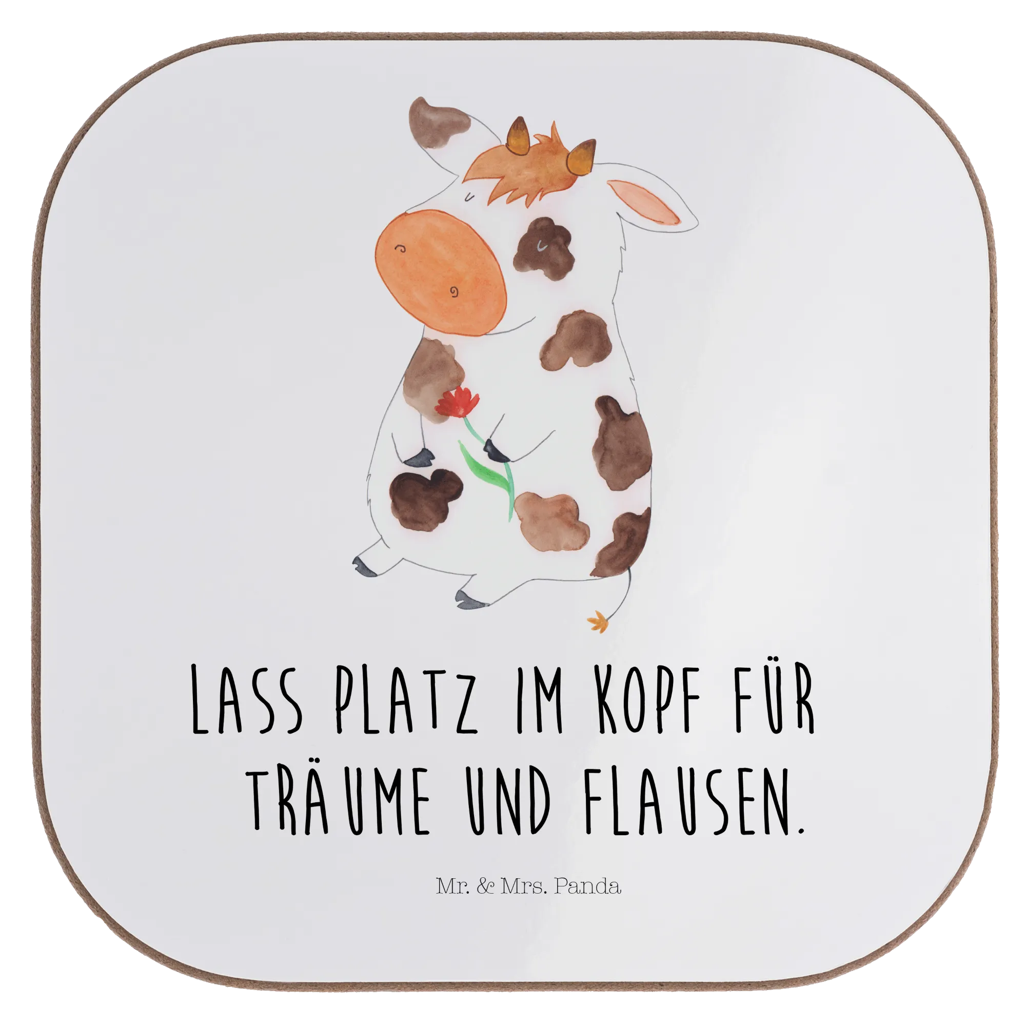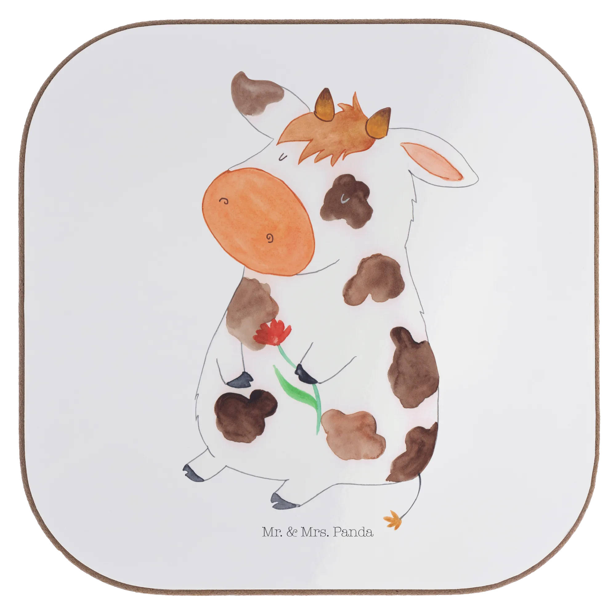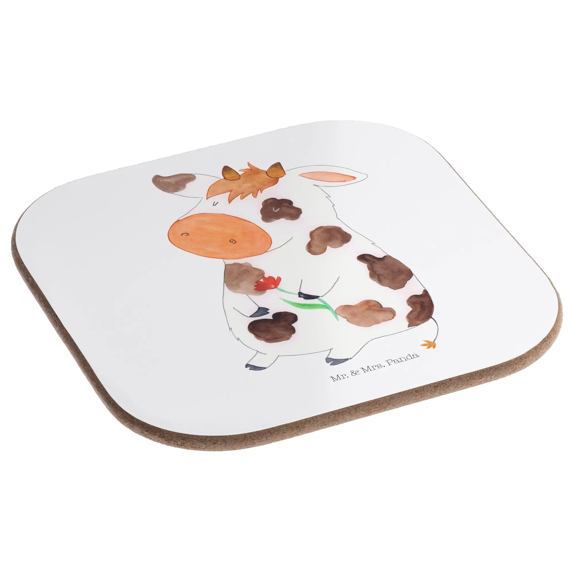 Der perfekte Untersetzer von Mr. & Mrs. Panda - unser wunderschöner quadratischer Untersetzer mit dem niedlichen Kuh-Motiv ist ein absoluter Hit für jeden Tierfreund! Dieser Untersetzer ist nicht nur eine praktische Lösung, um Tischoberflächen vor unschönen Abdrücken und Kratzern zu schützen, sondern bringt charmante Bauernhof-Atmosphäre in dein Zuhause. ❤️ Die kleine, verträumte Kuh, die stolz mit einer Blume in der Hand posiert, bringt Freude und Motivation in jeden Moment.
