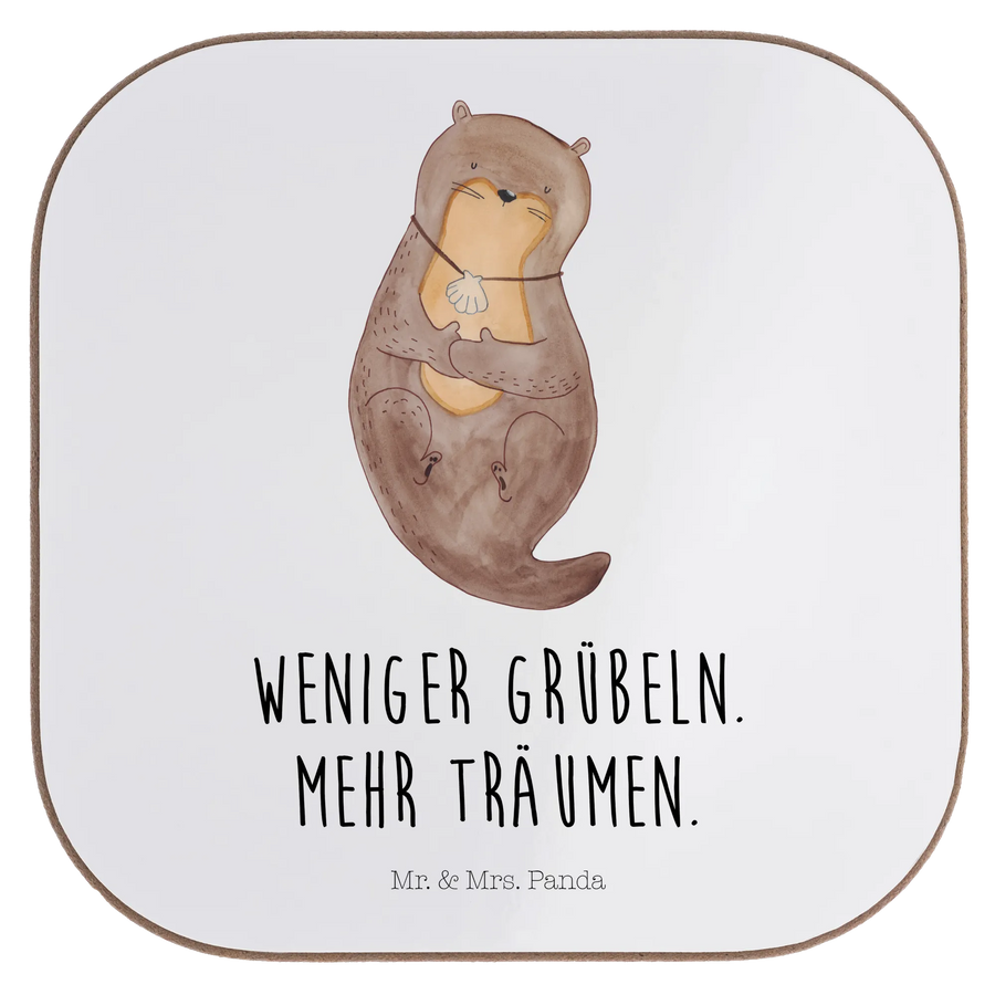 Mr. & Mrs. Panda Untersetzer „Otter mit Muschelmedaillon“ – Quadratisch, charmant und praktisch.
