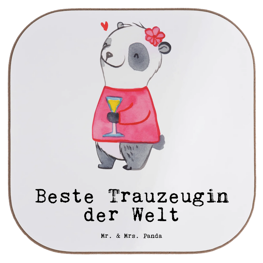 Quadratische Untersetzer Panda Beste Trauzeugin der Welt – Mr. & Mrs. Panda