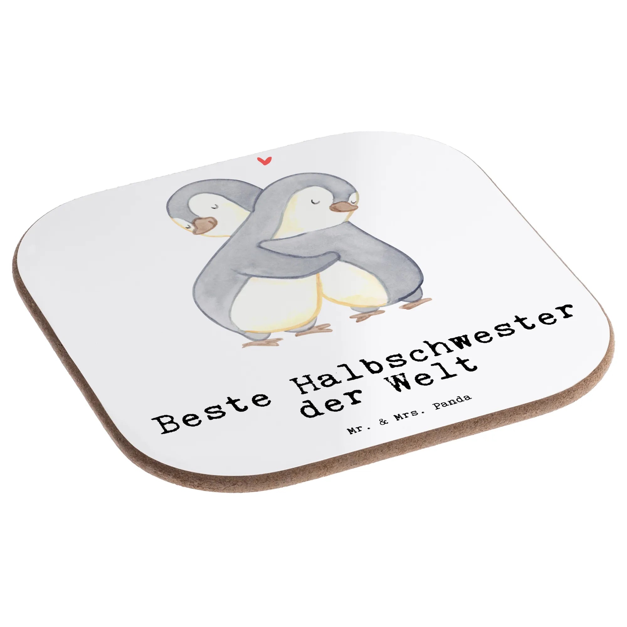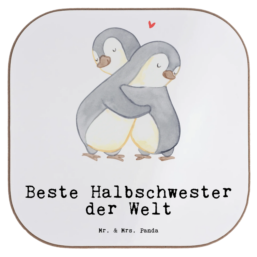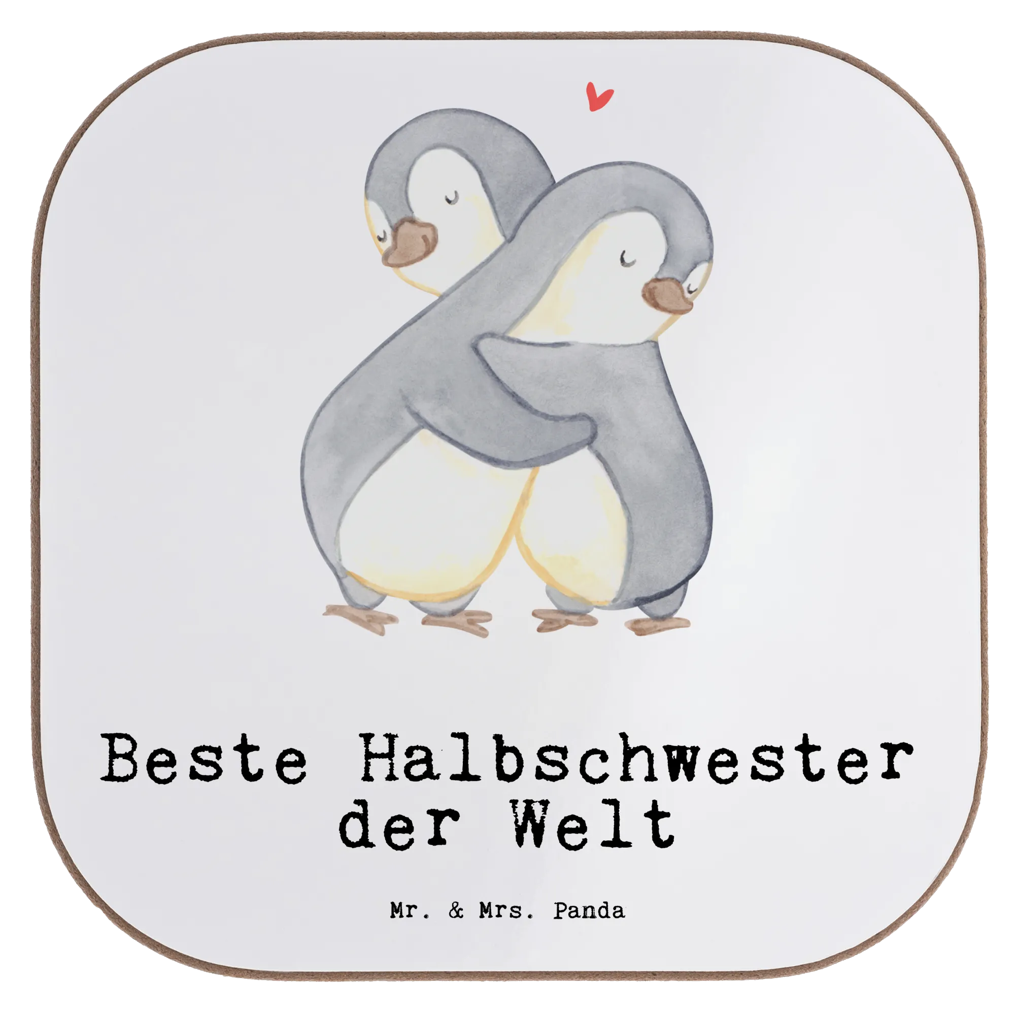 Quadratische Untersetzer Pinguin Beste Halbschwester der Welt