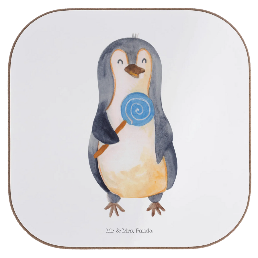 Quadratische Untersetzer Pinguin Lolli - ohne Spruch - Weiß