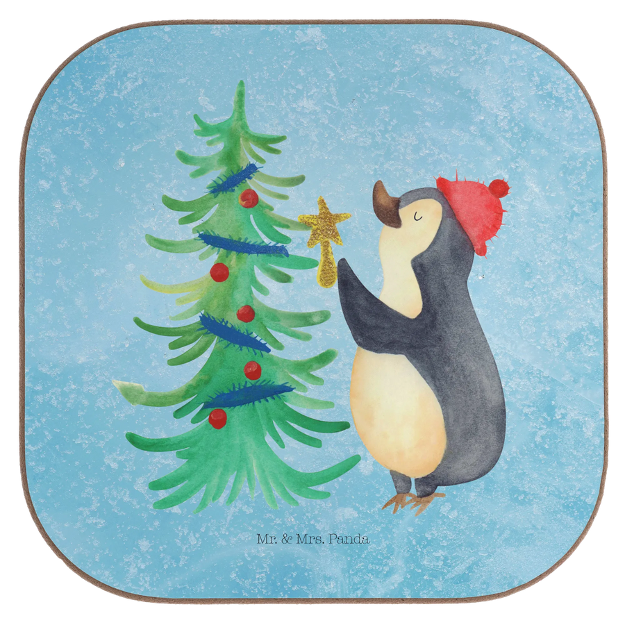 Untersetzer Pinguin Weihnachtsbaum - ohne Spruch - Eisblau