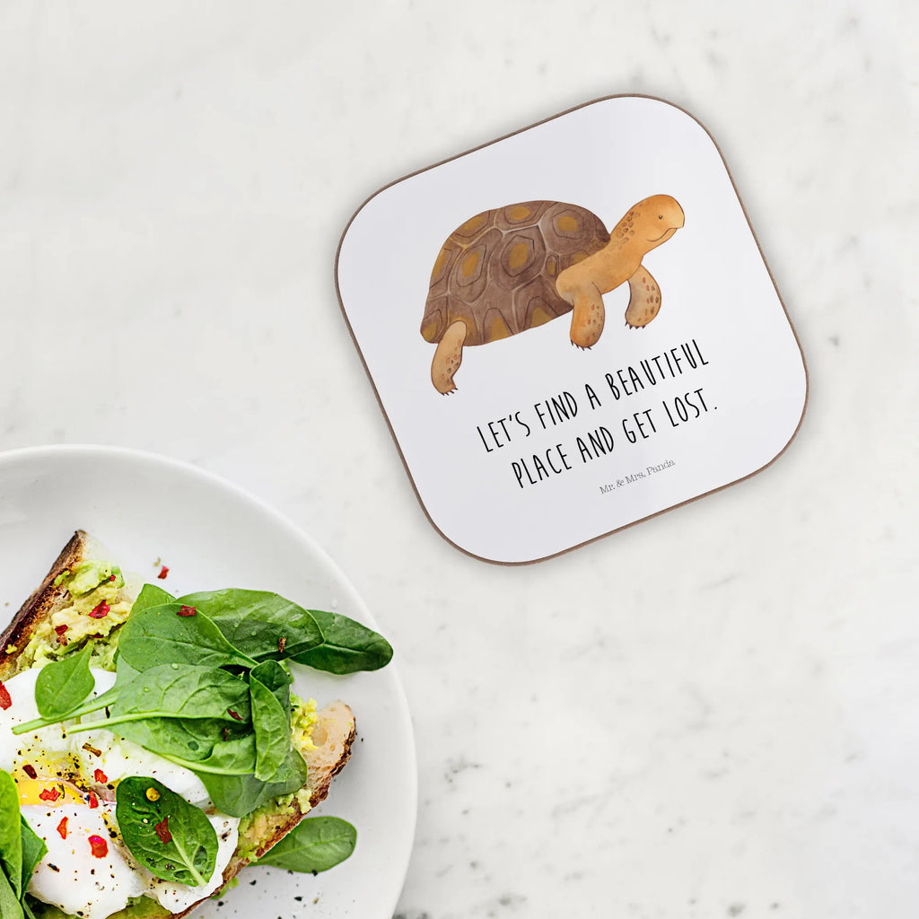 Entdecke den perfekten Untersetzer von Mr. & Mrs. Panda, der nicht nur als praktisches Accessoire dient, sondern auch dein Herz erfreut! Mit liebevoll gestalteten Motiven aus unserer Meerestiere-Kollektion, ist der Untersetzer "Schildkröte marschiert" ein echter Blickfang. Die Schildkröte erinnert uns daran, die Abenteuer des Lebens in Ruhe zu genießen. Mit dem Spruch "Let's find a beautiful place and get lost." inspiriert er dich dazu, neue Orte zu erkunden und dabei den Stress des Alltags hinter dir zu lassen.