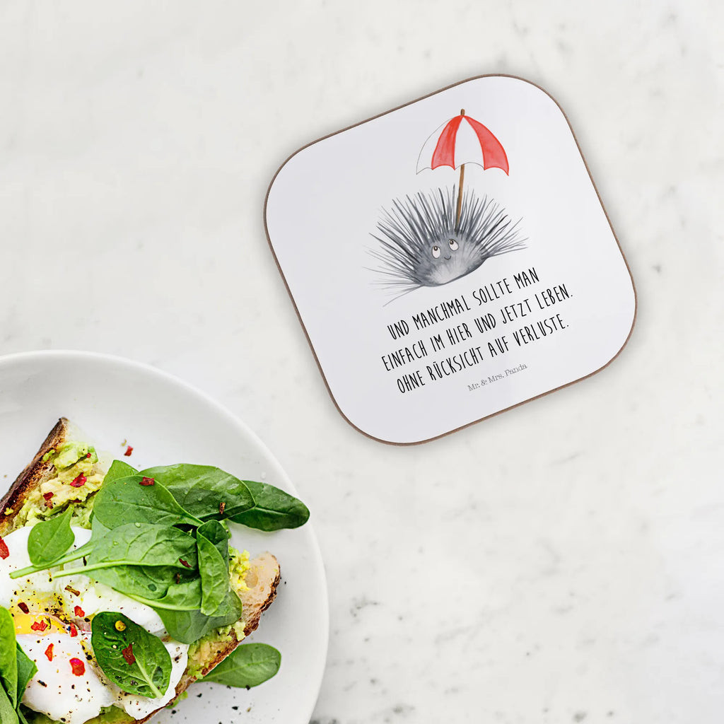 Entdecke den einzigartigen Untersetzer mit dem zauberhaften Motif des Seeigels aus der Meerestiere Kollektion von Mr. & Mrs. Panda! Dieser quadratische Untersetzer (100 mm x 100 mm) ist der perfekte Begleiter für alle, die unter dem Motto "Und manchmal sollte man einfach im Hier und Jetzt leben. Ohne Rücksicht auf Verluste." leben.